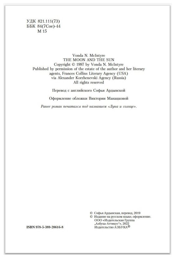 Купила, думая, что это продолжение романа «Луна и Солнце», а оказалось, что это тот же самый роман, но под другим названием, его решили переиздать под названием фильма, снятого по книге «Луна и солнце». Зачем было в анонсе писать «впервые на русском языке»? Введение читателей в заблуждение… Книга мне очень понравилась (читала давно), но вся эта история с переизданием, конечно так себе…