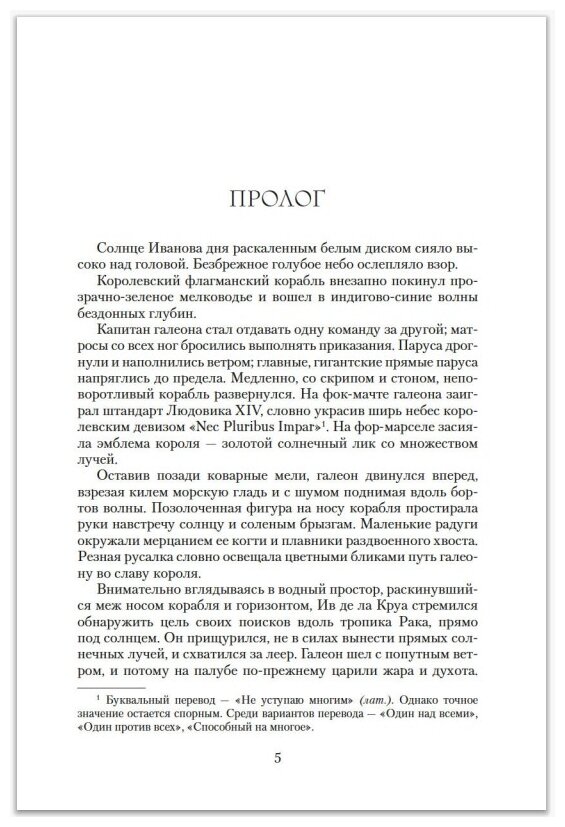 Есть вещи, перед которыми бессильна даже абсолютная власть. «Король-солнце» волен распоряжаться чужой жизнью, но его собственная неумолимо утекает в прошлое. Бессмертие — вот чего испокон веков жаждали владыки, и Людовик XIV не стал исключением. В надежде обрести власть над самой смертью он отправляет ученого-священника, отца де ла Круа, в экспедицию за легендарными морскими созданиями, чья плоть, согласно преданиям, дарует вечную жизнь. И вот наконец долгожданный корабль возвращается с удивительной пленницей. Неизвестно, способно ли это загадочное существо даровать королю победу над смертью, но судьбы многих людей оно изменит безвозвратно…