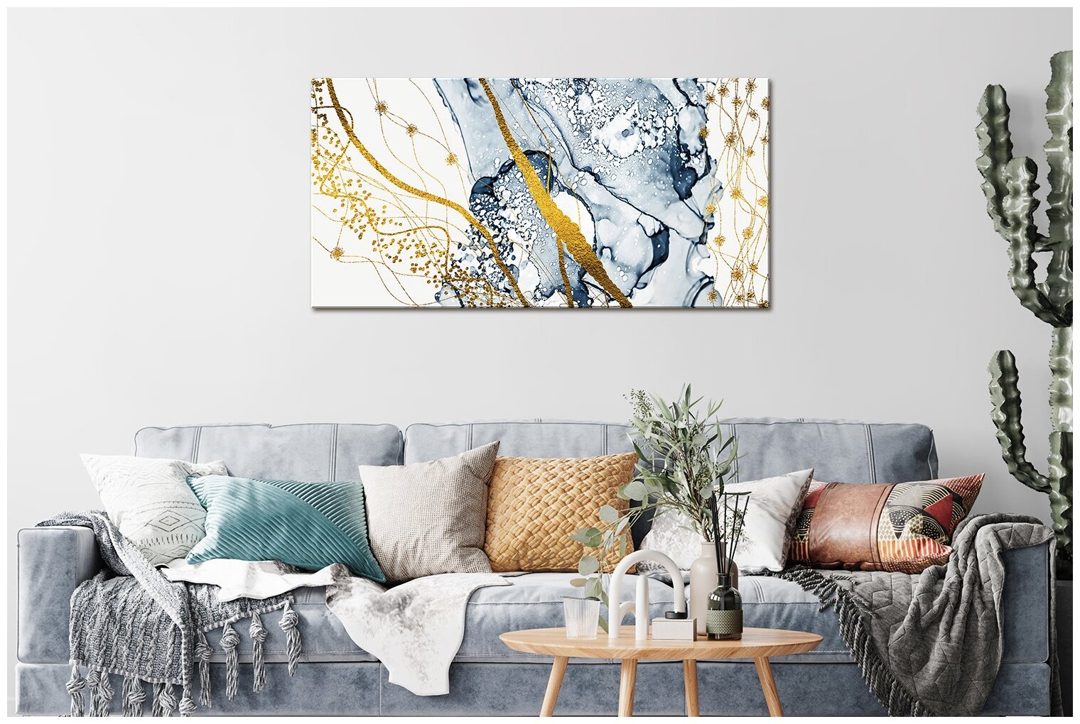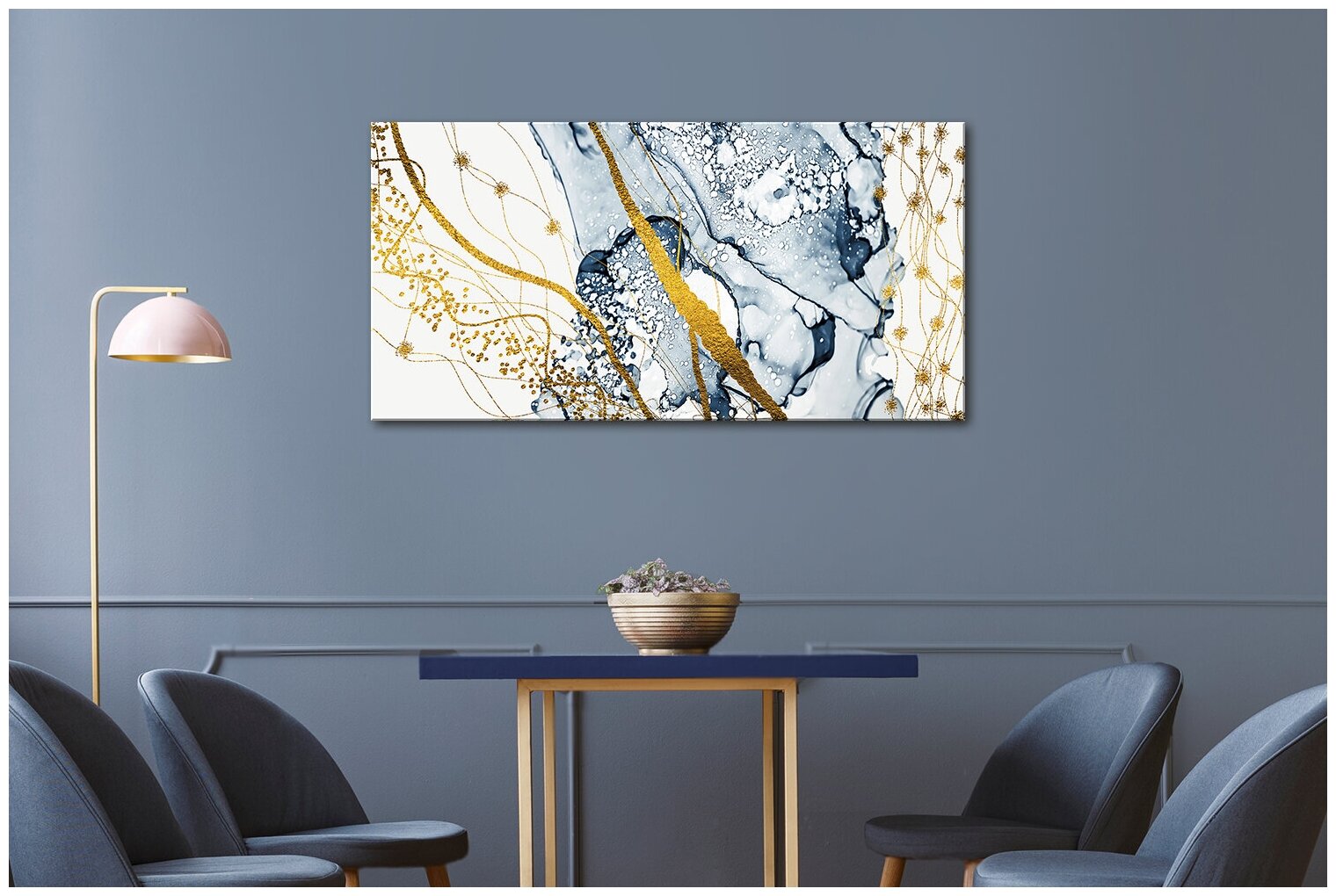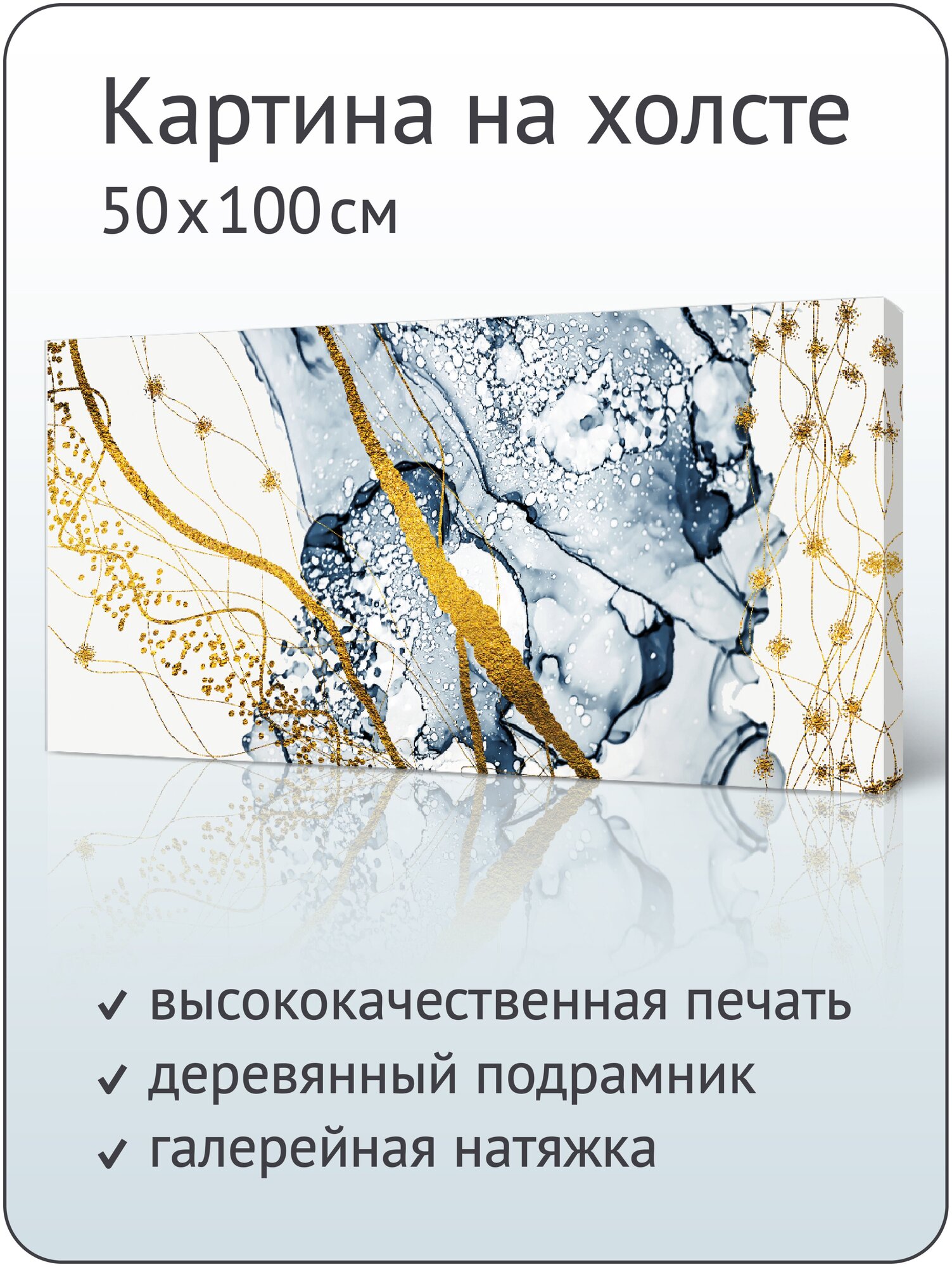 Картина постер абстракция на холсте на стену для интерьера "Золотые сети" 50х100 см большая/Графис Hoff