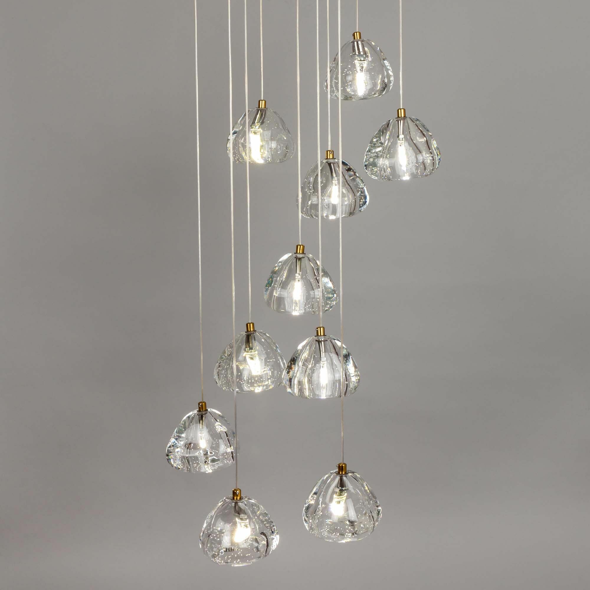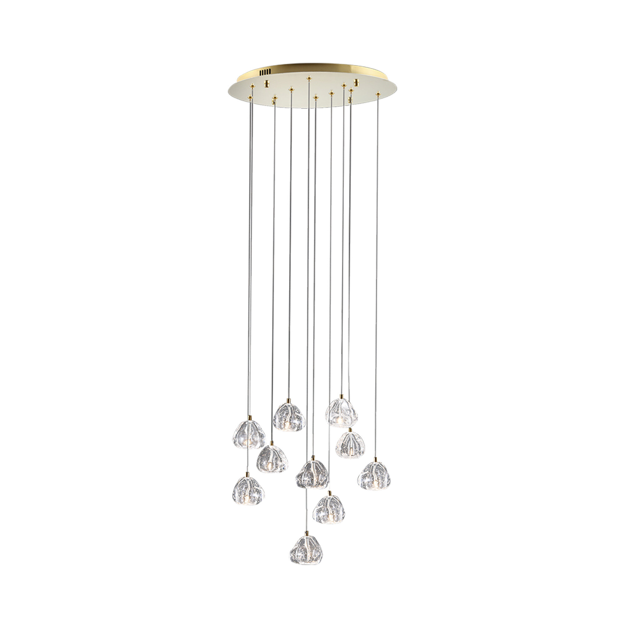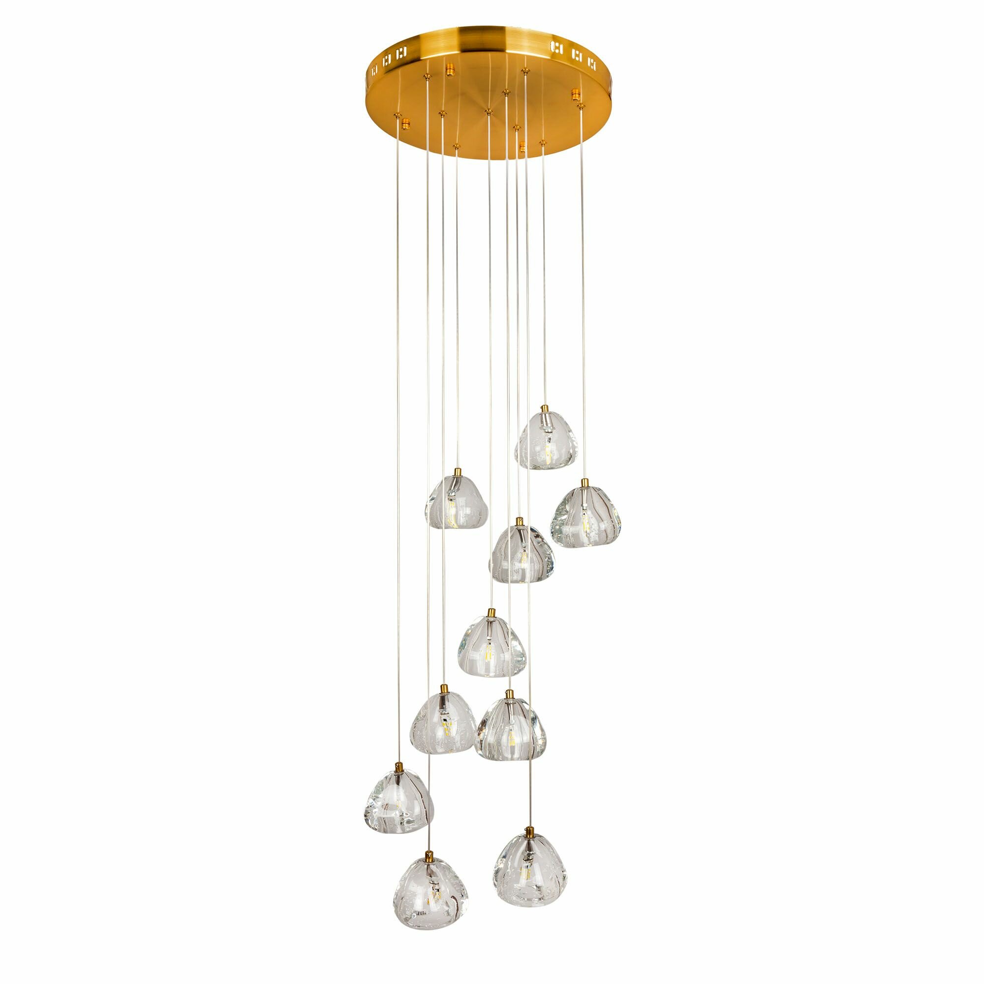 Подвесной светильник Liberty от английской фабрики Hiper украсит гостиную, кафе, кухню, офис, магазин в стиле арт-деко. Материал изготовления — металл, цвет золото. 10 рассеивателей из стекла с цоколем 10xG4 и мощностью ламп 200W, площадь освещения составляет до 10 кв. м. Световой поток 1800 Лм. Питание от сети 220V. Технические особенности: регулировка высоты. Монтаж производится на пластину. Габариты: высота — 120 см, диаметр — 40 см.