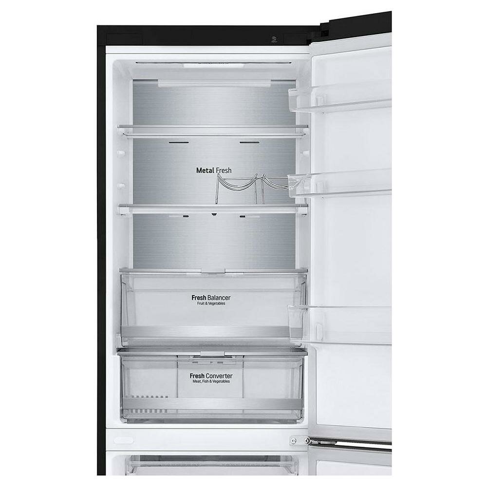 Холодильник LG черный, двухкамерный, общий объем 374л, с разморозкой холодильной камеры No Frost, с разморозкой морозильной камеры No Frost, расположение морозильной камеры: снизу