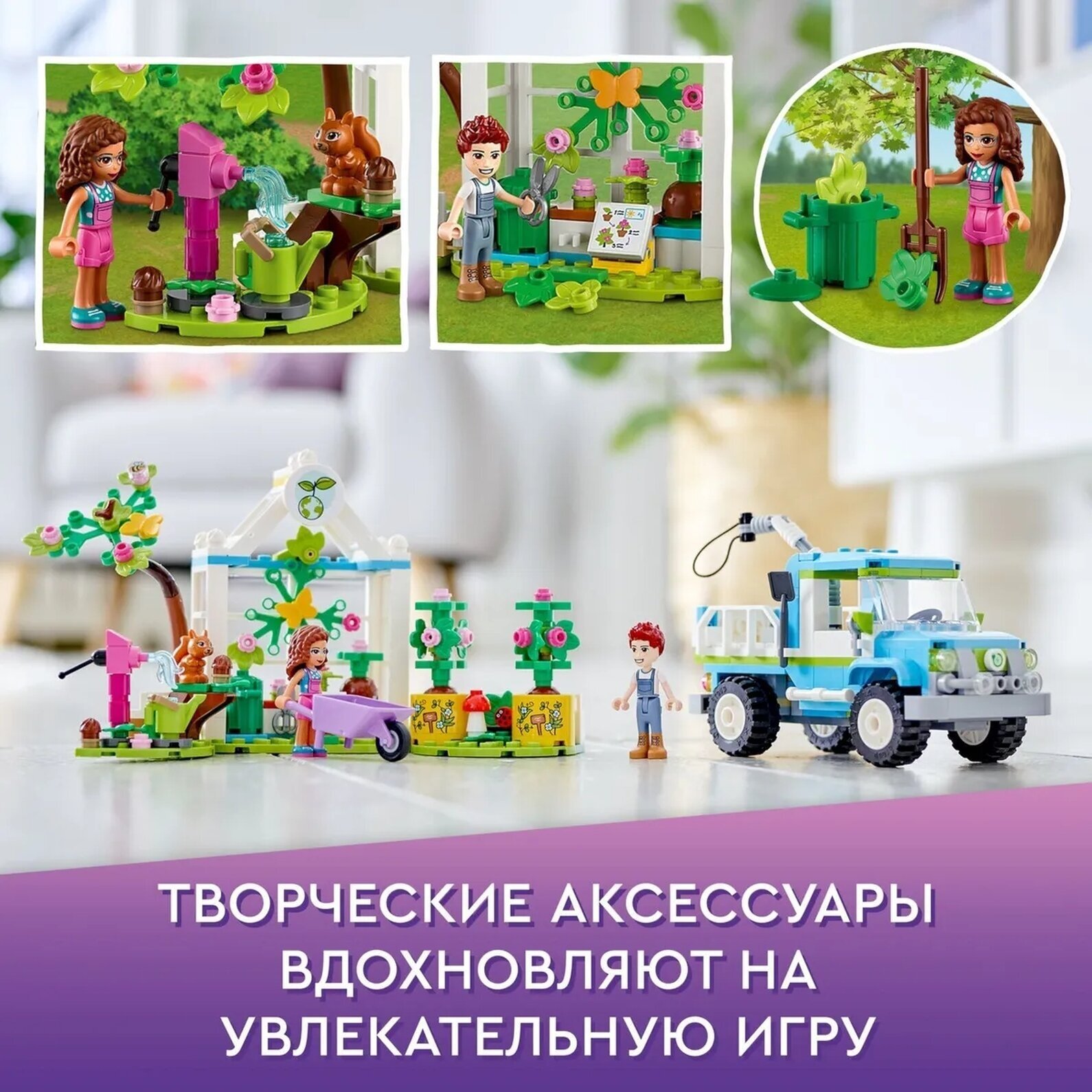 - Впечатления для маленьких садоводов — порадуйте детей, которые любят игрушки на тему природы, набором «Машина для посадки деревьев» LEGO Friends (41707). В этот набор входят эко-грузовик и питомник для деревьев.