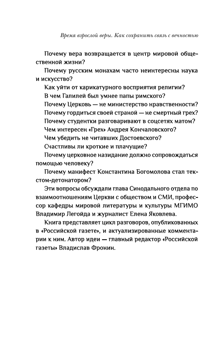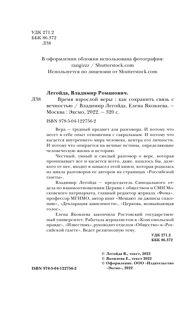 Время взрослой веры. Как сохранить связь с вечностью (Легойда Владимир Романович, Яковлева Елена Степановна); ООО "Издательство "Эксмо", 2022