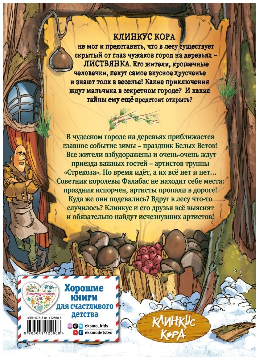 Жители Листвянки, секретного города на деревьях, просто обожают зимний праздник Белых Веток! Именно в этот день в городе выступает знаменитая труппа "Стрекоза". Но этой зимой весь Большой лес занесло снегом, и артисты пропали в дороге! Жители Листвянки переживают: что же случилось с труппой? Без неё праздник можно отменять… Но Клинкус и его друзья не сдаются: они обязательно найдут пропавших артистов!