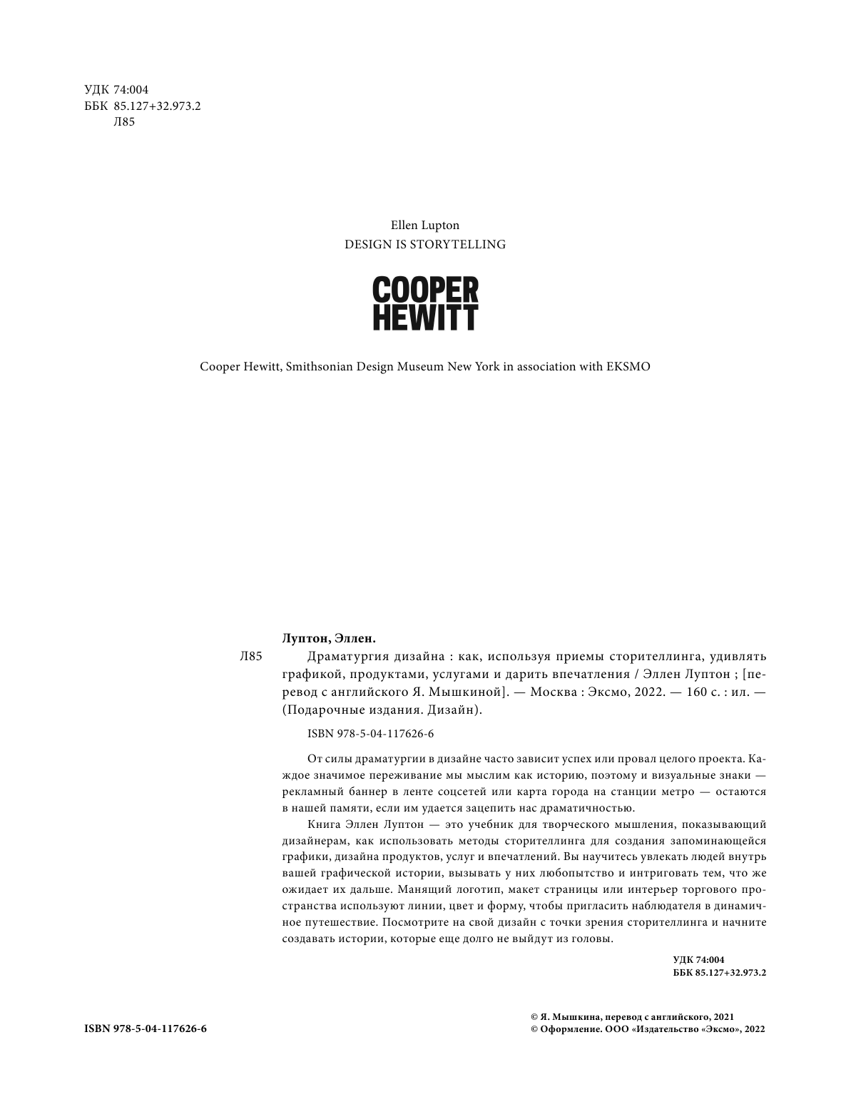 Драматургия дизайна. Как используя приемы сторителлинга удивлять графикой продуктами услугами и дарить впечатления (Эллен Луптон); ООО "Издательство "Эксмо", 2022