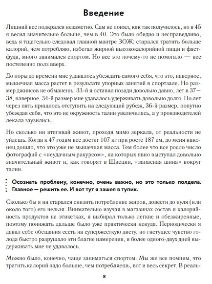 Если вы знаете, что в одном яйце 75 калорий, что сливочное масло — это зло, а за 5 километров вы сожжете один прием пищи, вам точно стоит прочитать эту книгу. Она поможет избавиться от дотошных подсчетов в голове и стресса по поводу каждого съеденного кусочка. Вы начнете питаться вкусно, сытно и, самое главное, будете худеть быстрее, чем когда бы то ни было!