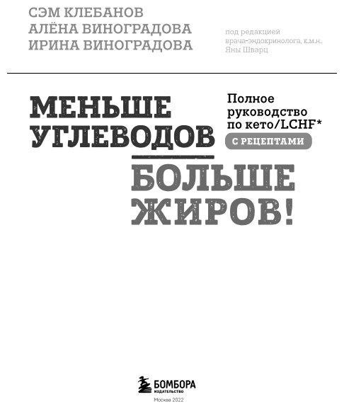Меньше углеводов – больше жиров! Полное руководство по кето/LCHF с рецептами (Клебанов Самуэль, Виноградова Алёна Викторовна, Виноградова Ирина Геннадьевна); Бомбора, 2022