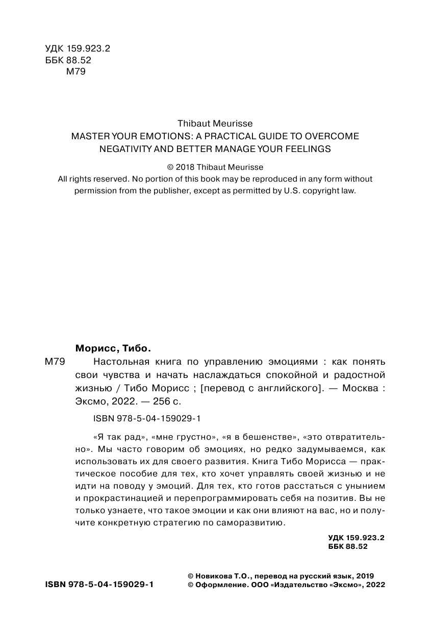 Настольная книга по управлению эмоциями. Как понять свои чувства и начать наслаждаться спокойной и радостной жизнью (Морисс Тибо); ООО "Издательство "Эксмо", 2022