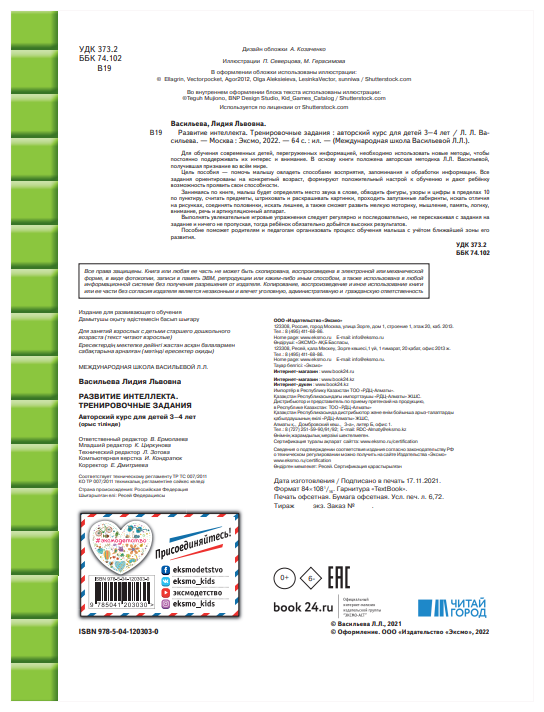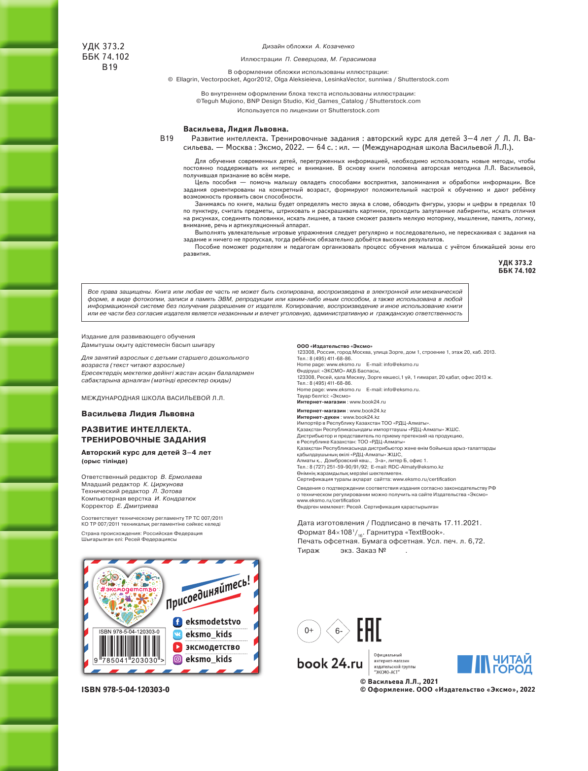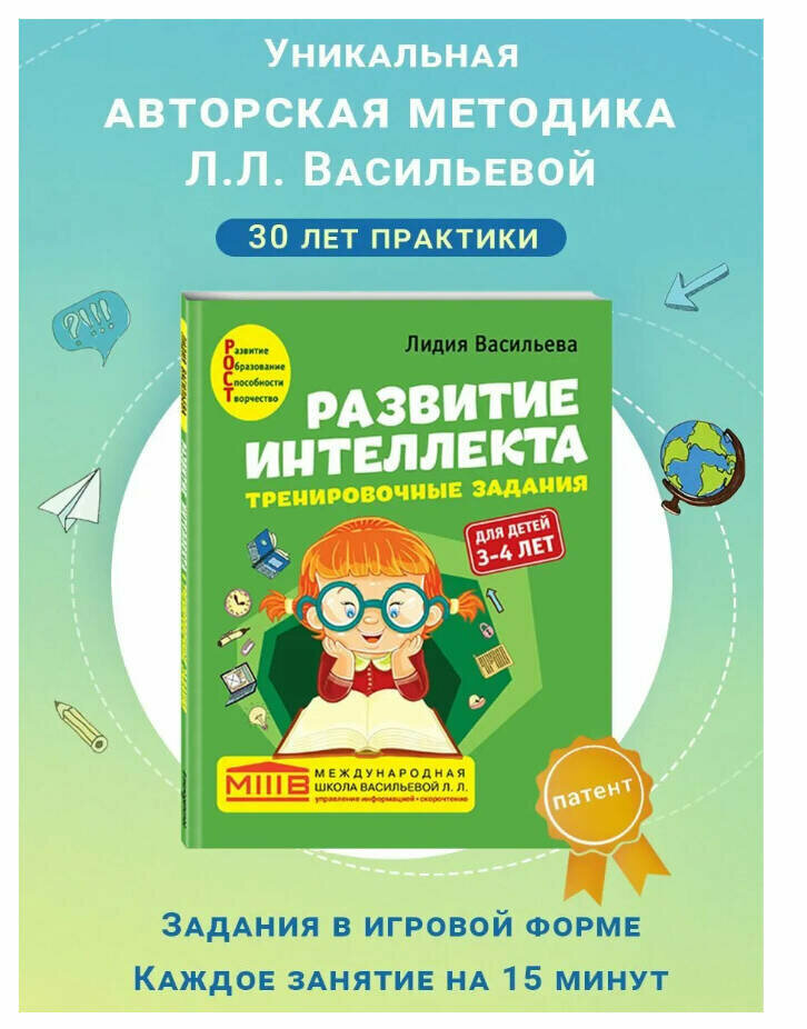 Развитие интеллекта. Тренировочные задания. Авторский курс: для детей 3-4 лет (Васильева Лидия Львовна); ООО "Издательство "Эксмо", 2022