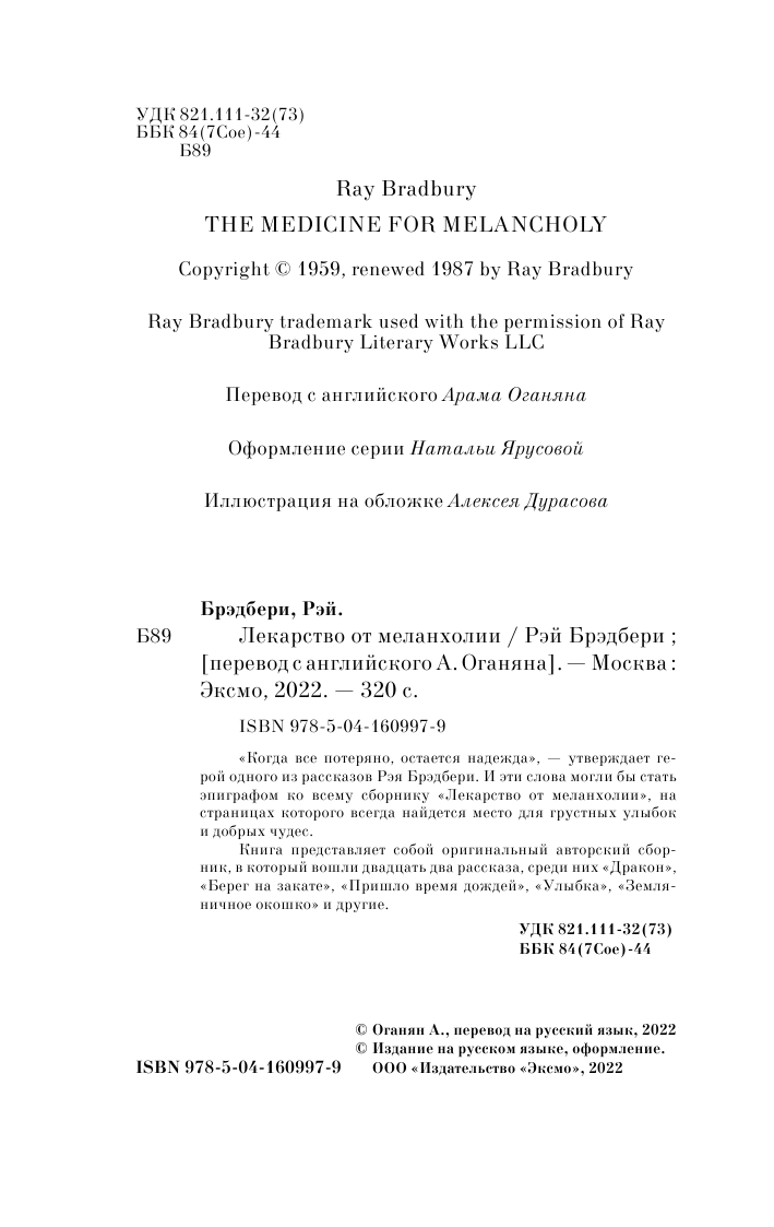 Книга: Лекарство от меланхолии (Брэдбери Рэй); Эксмо-Пресс, 2022