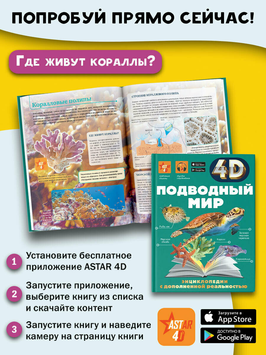 Восторг! Никогда такого не видел! Замечательная энциклопедия с новыми дополнениями. 4D заинтересовал сразу, и поняли, что не зря, когда открыли книгу дома. Смотришь на экран - вот же она, рыбка, прям над книгой плавает! Радости выше крыши у детей, это точно! Рекомендую!