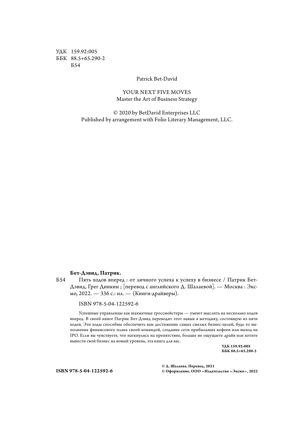 Пять ходов вперед. От личного успеха к успеху в бизнесе (Бет-Дэвид Патрик, Динкин Грег); ООО "Издательство "Эксмо", 2022