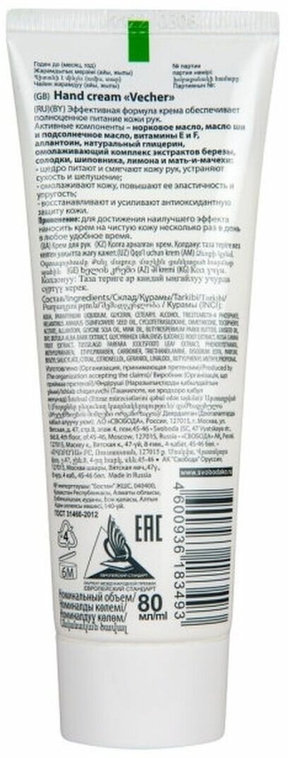 Крем для рук вечер питательный Свобода 78г Свобода АО (751455)