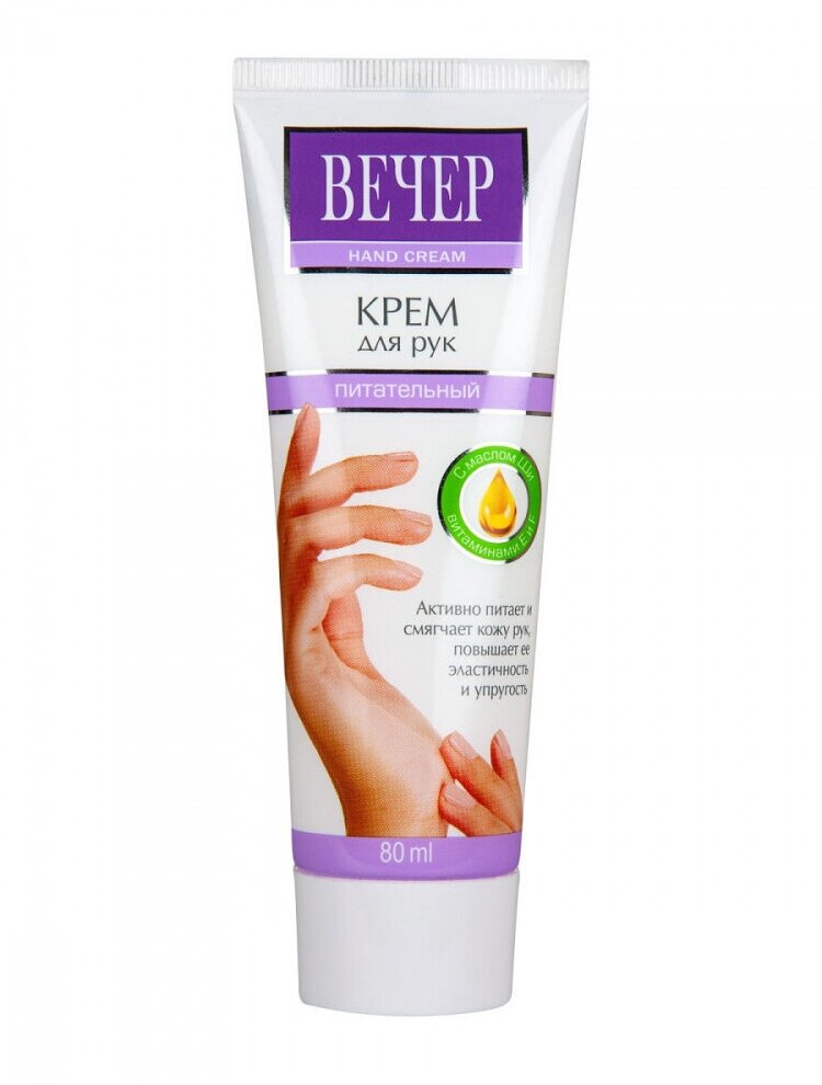 Моментальный заряд живительной влаги подарит вам крем для рук питательный Свобода Вечер. Эффективная формула крема обеспечивает полноценное питание кожи рук. Активные компоненты — норковое масло, масло ши и подсолнечное масло, витамины Е и F, аллантоин, натуральный глицерин, омолаживающий комплекс экстрактов березы, солодки, шиповника, лимона и мать-и-мачехи активно питают и смягчают кожу рук, устраняют сухость и шелушение, омолаживают кожу, повышают ее эластичность и упругость, гладкость, восстанавливают и усиливают антиоксидантную защиту кожи. Питательное средство для рук от Свобода Вечер сделает ваши ручки безупречными в один момент! Крем питательный / восстанавливающий крем для рук / увлажнение для рук Состав: Aqua, Paraffinum Liquidum, Glycerin, Cetearyl Alcohol, Triceteareth-4 Phosphate, Helianthus Annuus Seed Oil, Dimethicone, Tocopheryl Acetate, Allantoin, Glycine Soja Oil, Mink Oil, Butyrospermum Parkii Butter, Betula Alba Bark Extract, Glycyrrhiza Uralensis Root Extract, Rosa Canina Fruit Extract, Tussilago Farfara Leaf Extract, Phenoxyethanol, Methylparaben, Ethylparaben, Acrylates/C10-30 Alkyl Acrylate Crosspolymer, Triethanolamine, Linum Usitatissimum Seed Oil, Disodium EDTA, ВНТ, Parfum.