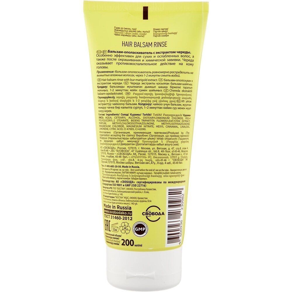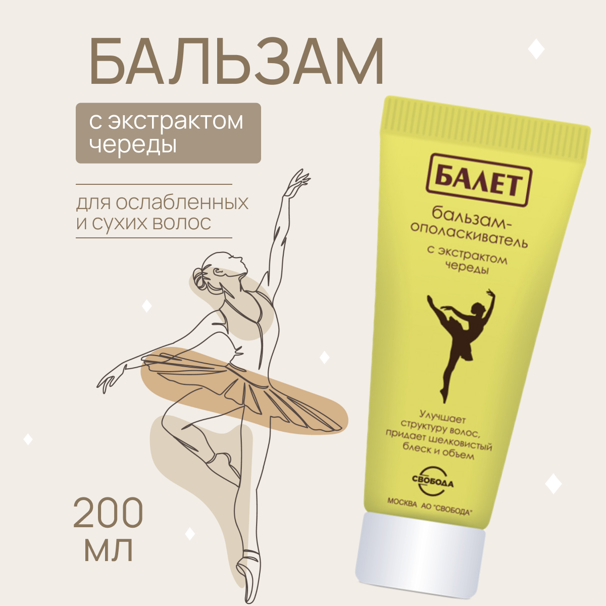 Бальзам-ополаскиватель для волос экстракт череды в ламинатной Ballet Свобода 75мл Свобода АО (751455)