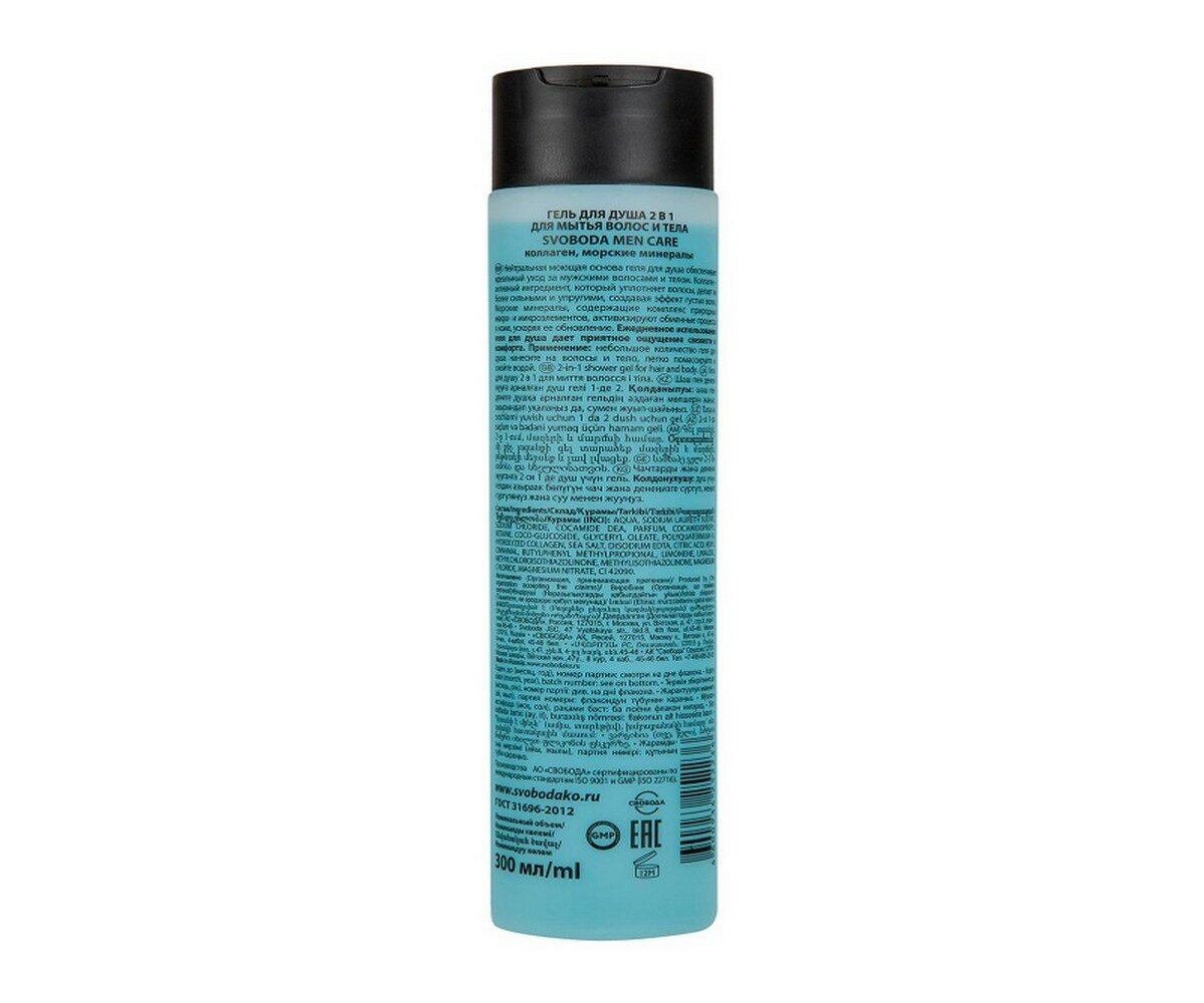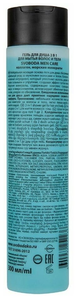 Гель для душа коллаген морские минералы для мытья волос и тела Men care Свобода 300мл Свобода АО (751455)