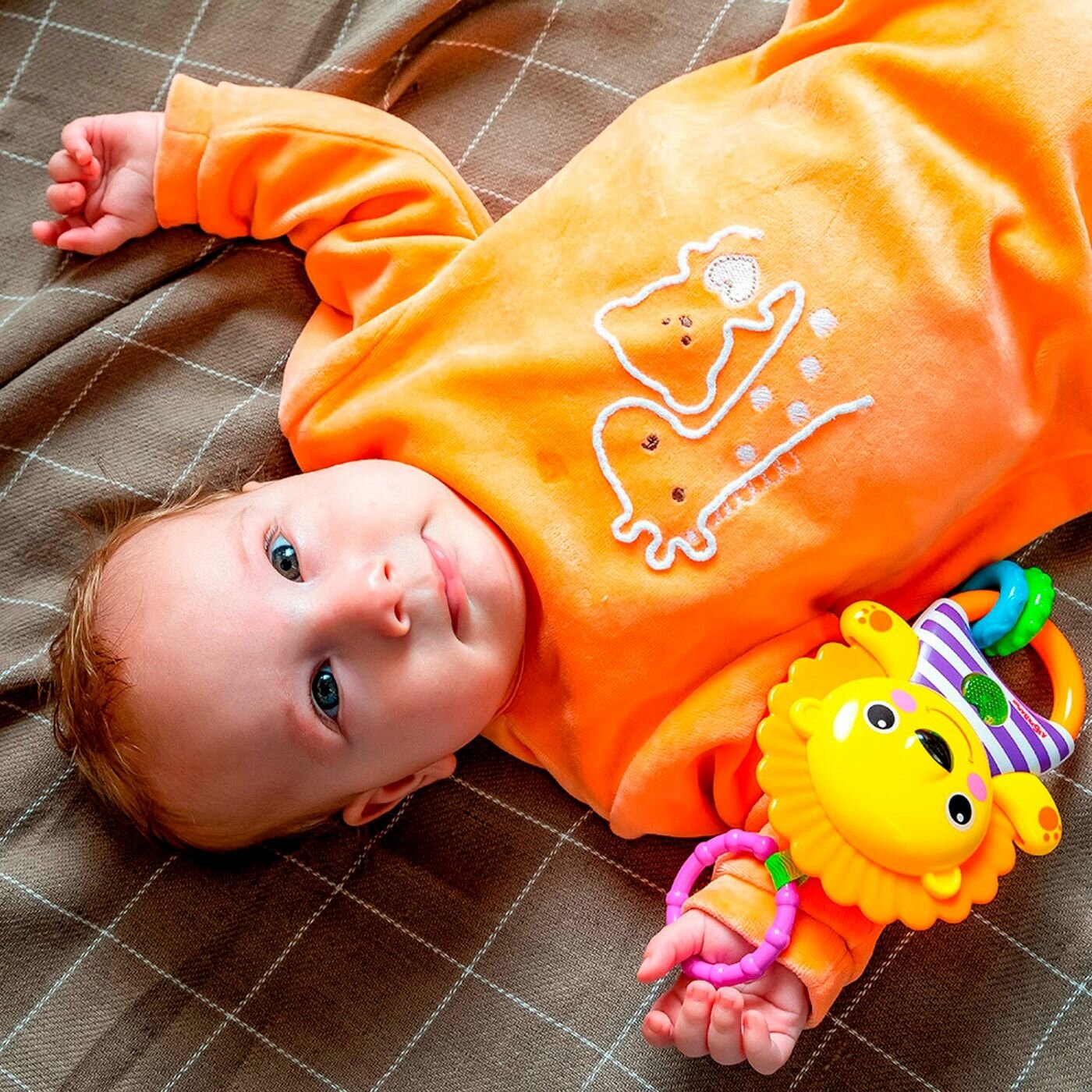 Яркая музыкальная подвеска для малыша в виде модного львенка! При нажатии на кнопочку ребенок сможет послушать веселые звуки, 5 песенок и мелодий(«Раз-два-три», «Тра-ля-ля», «Танец зверят» и др.). В игрушке много активных элементов, помогающих в развитии органов чувств. Грива львенка крутится и издает забавный звук трещотки, рельефные колечки развивают мелкую моторику, кнопочка с огоньком привлекает внимание. Подвеска удобно крепится на кроватку или коляску с помощью колечка.