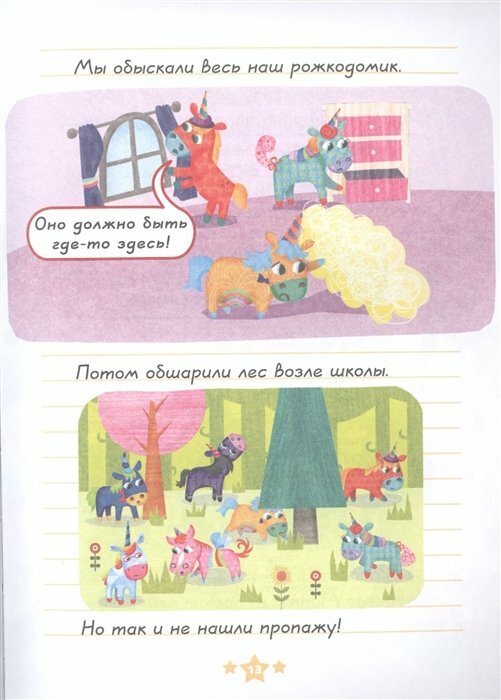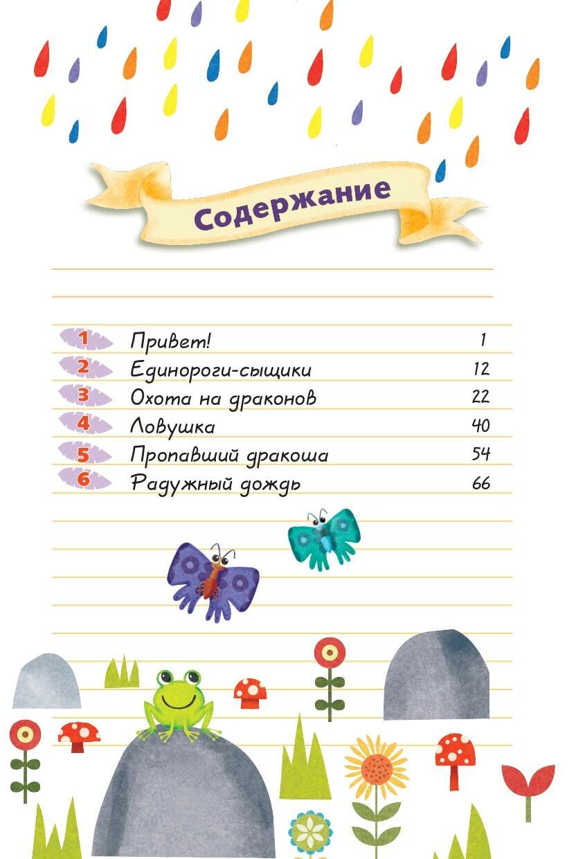Купила обе книги в подарок племяннице, которой 7 лет. Она обожает всё, что связано с единорогами и уже хорошо читает. Но читать не любит, а эти книжки прочла быстро - они как мультик - очень много картинок, простой текст и герои разговаривают как в комиксе - создаётся впечатления присутствия и живого участия в приключении. В этой книге (кстати, истории в книгах не связаны - можно начинать знакомство с миром единорогов с любой книги серии) друзья ведут детективное расследование и знакомятся с маленьким непослушным дракончиком, а читатели узнают что такое логика и учатся терпеливому общению с активными малышами.