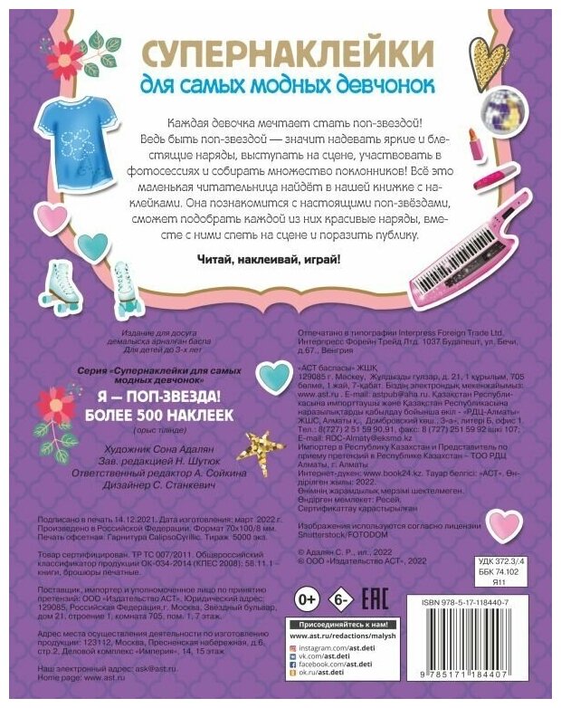 Сервис сравнения цен СкидкаГИД предлагает сравнить цены на товар «Книга: Я - поп-звезда! (Адалян Сона Р. (художник)); АСТ. Малыш 0+, 2022»