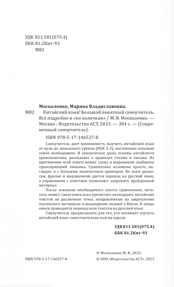 Китайский язык! Большой понятный самоучитель. Всё подробно и "по полочкам" (Марина Владиславовна Москаленко); АСТ, 2024