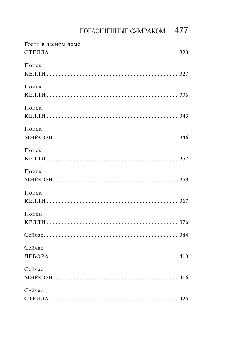 Я являюсь поклонником творчества Э.Уайт и читаю все ее произведения, появляющиеся на прилавках книжных магазинов. "Поглощенные сумраком" проглотила за два дня, как всегда читается на одном дыхании, сюжет динамичный, лихо закрученный детектив. Повествование идет чередованием глав прошлого и настоящего, романтическая линия сюжета не осталась в стороне, как всегда во главе действия сильная и харизматичная героиня со сложной судьбой . Так как в аннотации к книге есть отсылка к А.Кристи "Десять негритят", то вычислить кто есть кто не составляет труда.