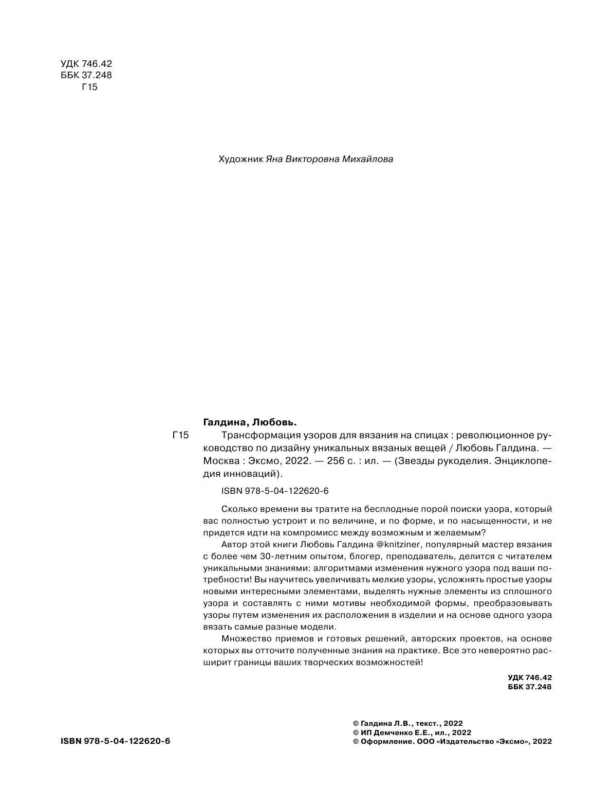 Трансформация узоров для вязания на спицах. Революционное руководство по дизайну уникальных вязаных вещей (Галдина Любовь); ООО "Издательство "Эксмо", 2022