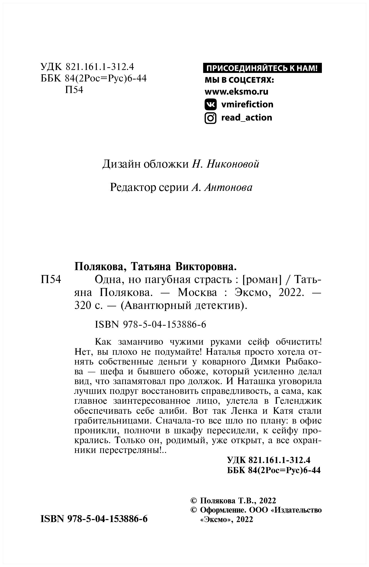 Одна но пагубная страсть (Полякова Татьяна Викторовна); ООО "Издательство "Эксмо", 2022