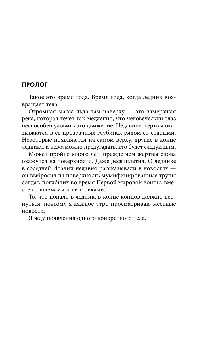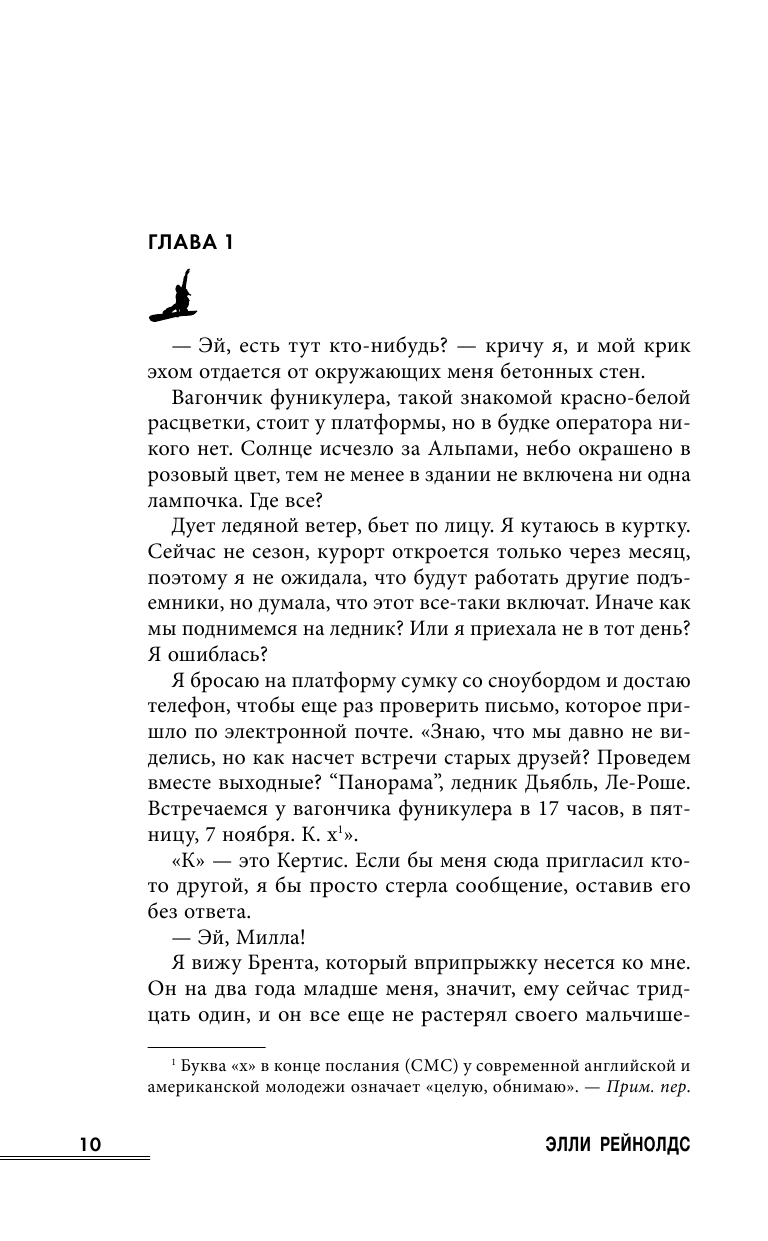 Прочитала эту книгу после того, как прочла "Шале" от того же издательства, и мне понравилось. Есть что-то особенное в атмосфере зимнего курорта, с которого тяжело сбежать, но в котором тоже тяжело проводить расследование. Это придает книге некий шарм, адреналин. Книга держит в напряжении, секреты того и гляди грозят прорваться, привычный мир рушится на глазах среди снега и льда. Рекомендую!
