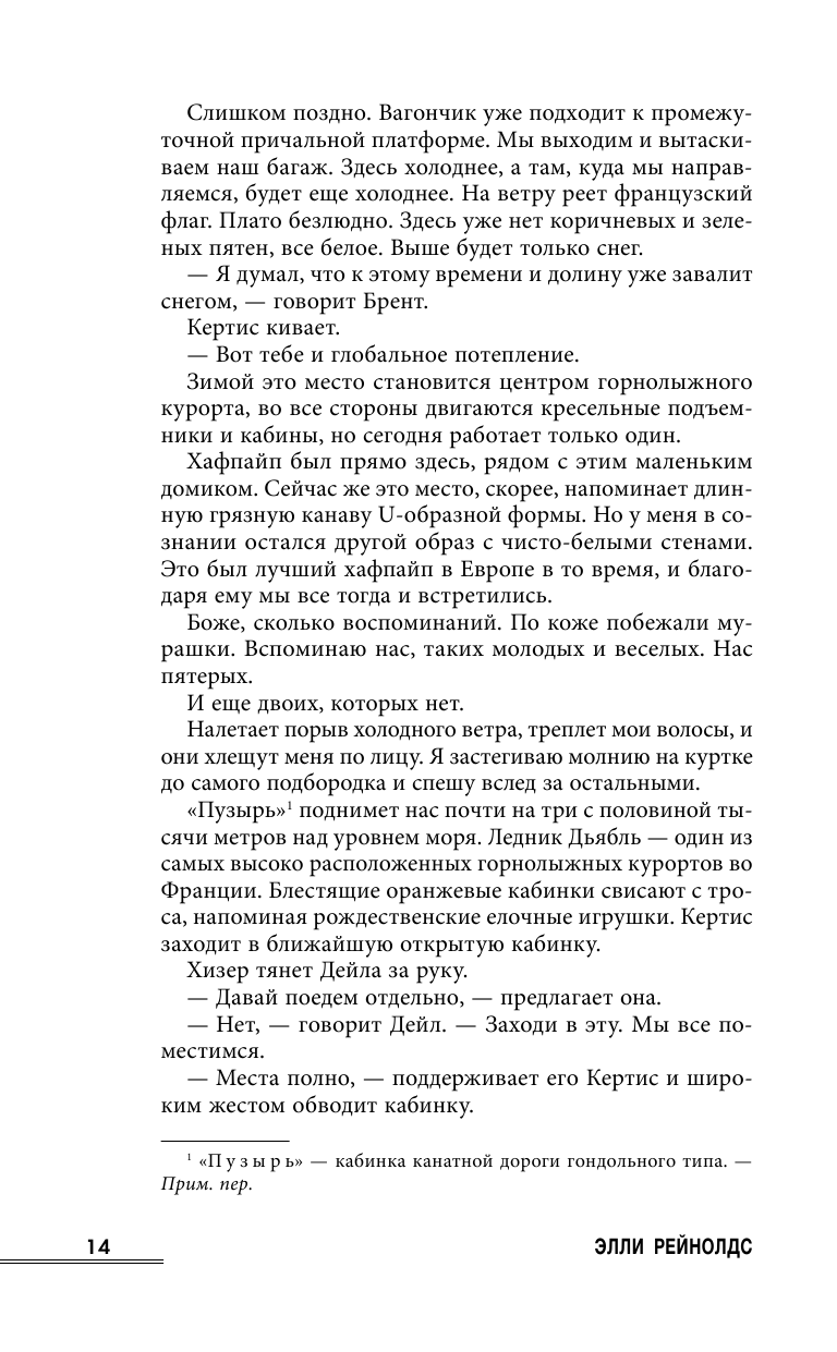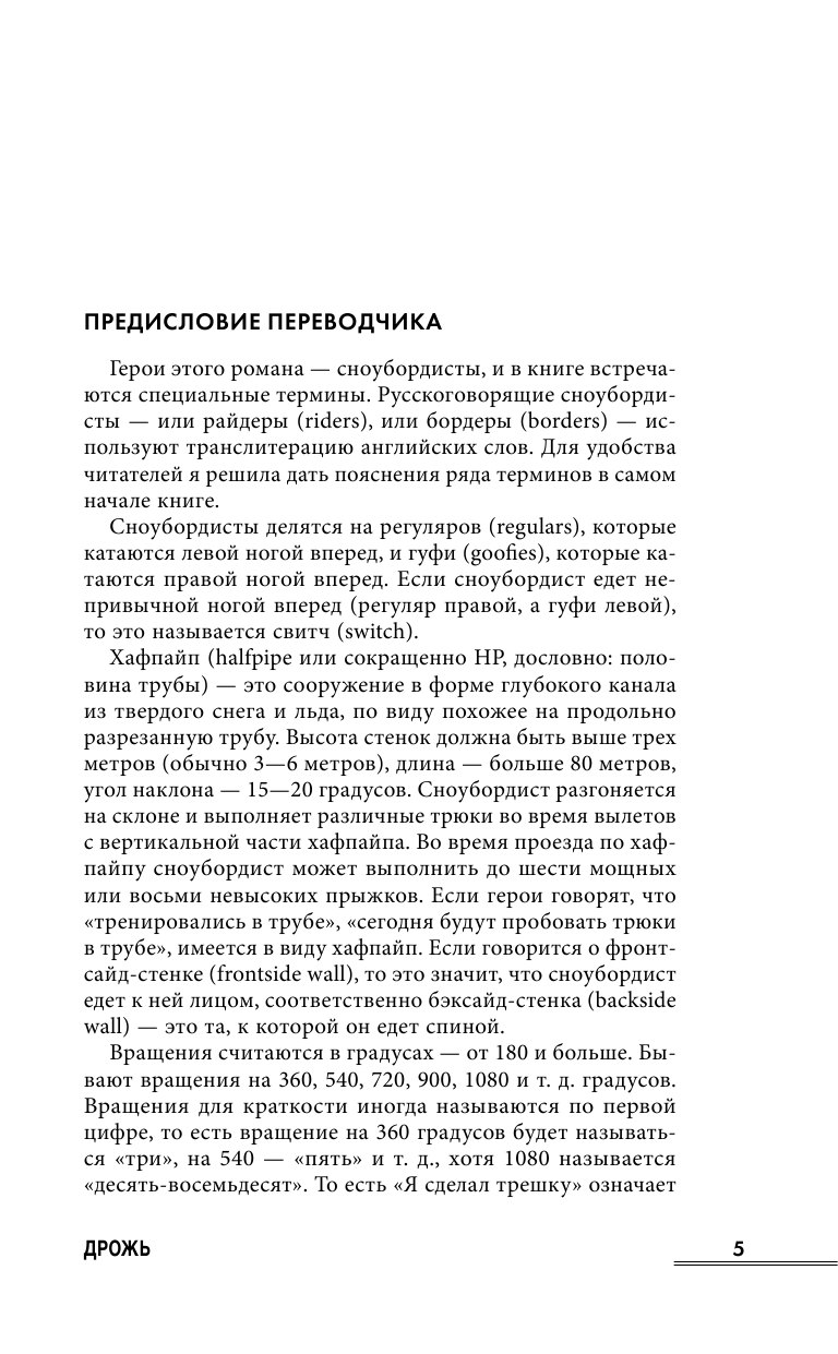 Читая «Дрожь», я чувствовала себя так же, как, мне кажется, чувствуют себя сноубордисты, съезжая со склона. Это было захватывающе, стремительно и страшно, но остановиться я не могла. Классическая история о группе друзей, запертых в домике в горах вместе с таинственным убийцей, чередуется с флешбэками в прошлое, где объясняются их запутанные отношения. Взрывной коктейль из амбиций, симпатий и страхов приводит к непоправимому, но даже когда все станет ясно, вопрос «Кто же здесь злодей?» останется открытым.