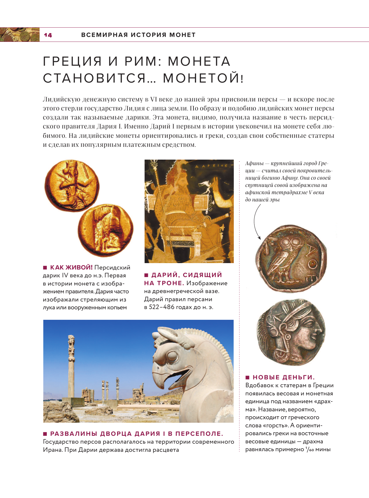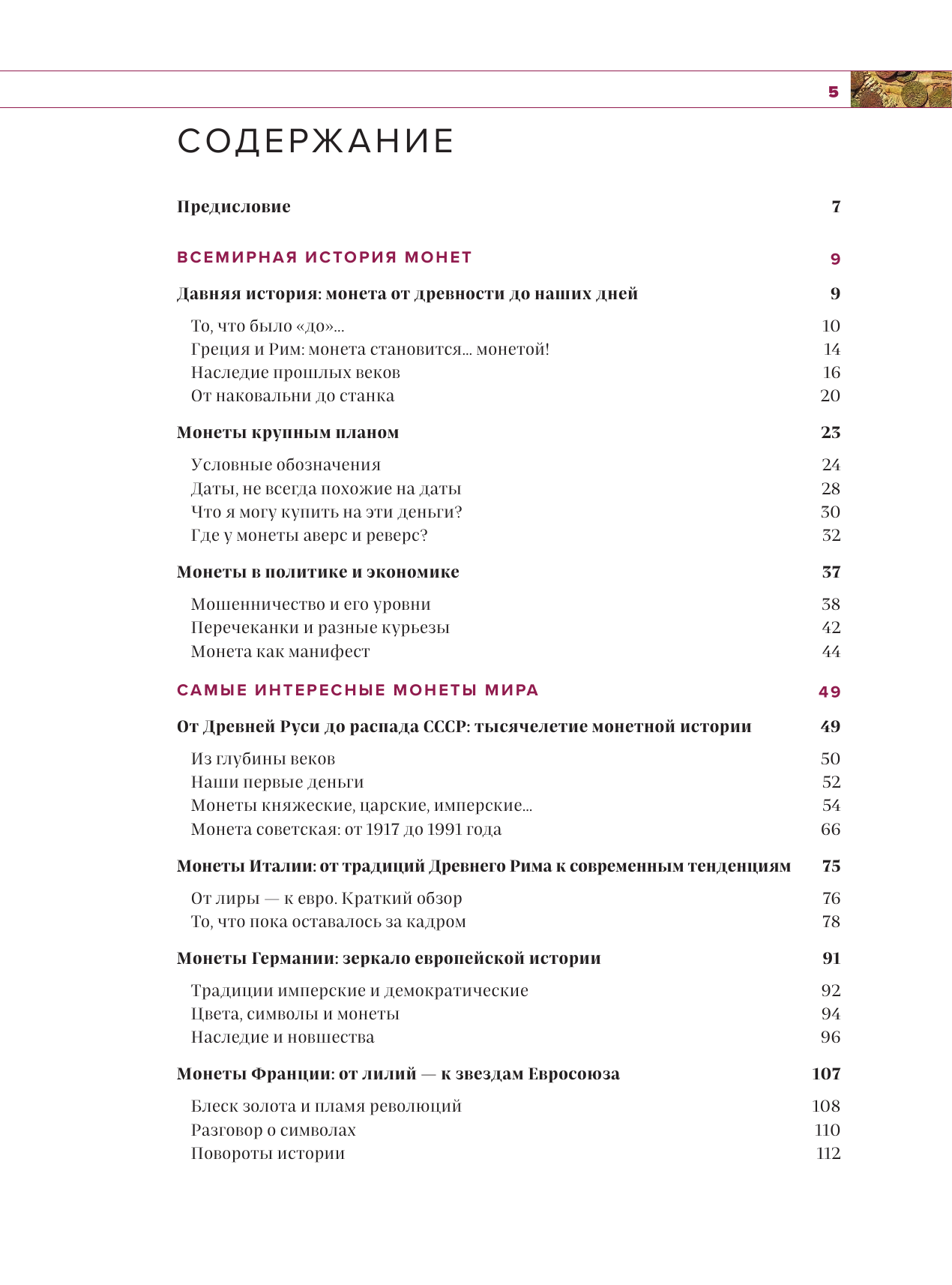 Потрясающе издание! Иллюстраций много, они яркие и красочные, есть реальные фотографии. Описания понятные, книга проводит полный экскурс по истории монет от самого их появления до современности. Читается взахлеб, не нудно, материал подан интересно и живо, самые основные пункты. В качестве подарка просто отличная идея, листы плотные, выглядит солидно.
