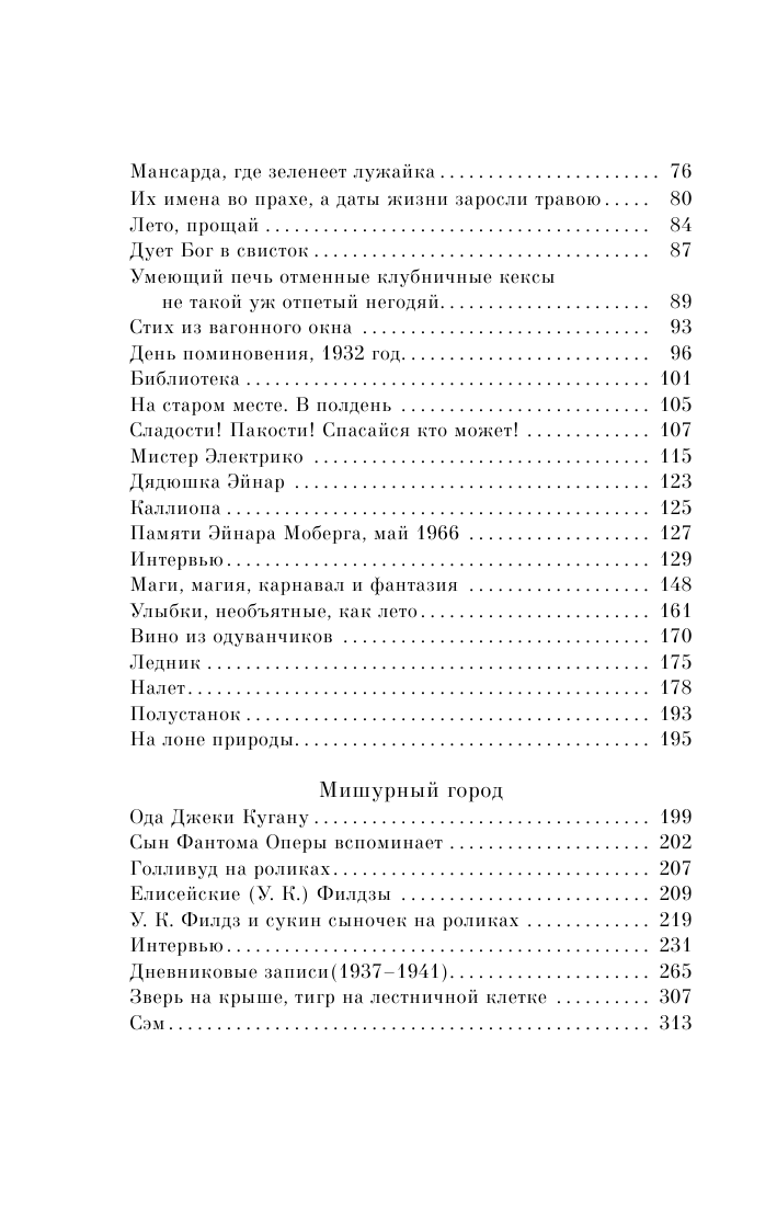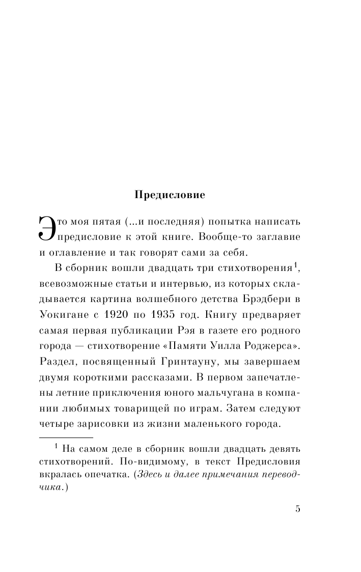 пожалуй, эта книга не явится откровением для широкого круга читателей, поскольку предназначена исключительно для преданных поклонников Рэя Брэдбери... так сказать - любителей его фирменных "фишек" и сюжетов, собирателей "редкостей" и "артефактов" (коих здесь предостаточно)... остальным я порекомендовал бы что-нибудь из уже проверенных временем сборников "классического периода" творчества писателя... само издание оформлено довольно качественно... впрочем, к переводчику у меня имеются вопросы - все-таки не стоит монополизировать этого автора, не находите?..