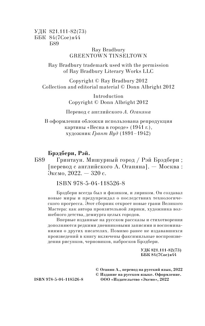 Книга: Гринтаун. Мишурный город (Рэй Брэдбери); Эксмо, Редакция 1, 2022