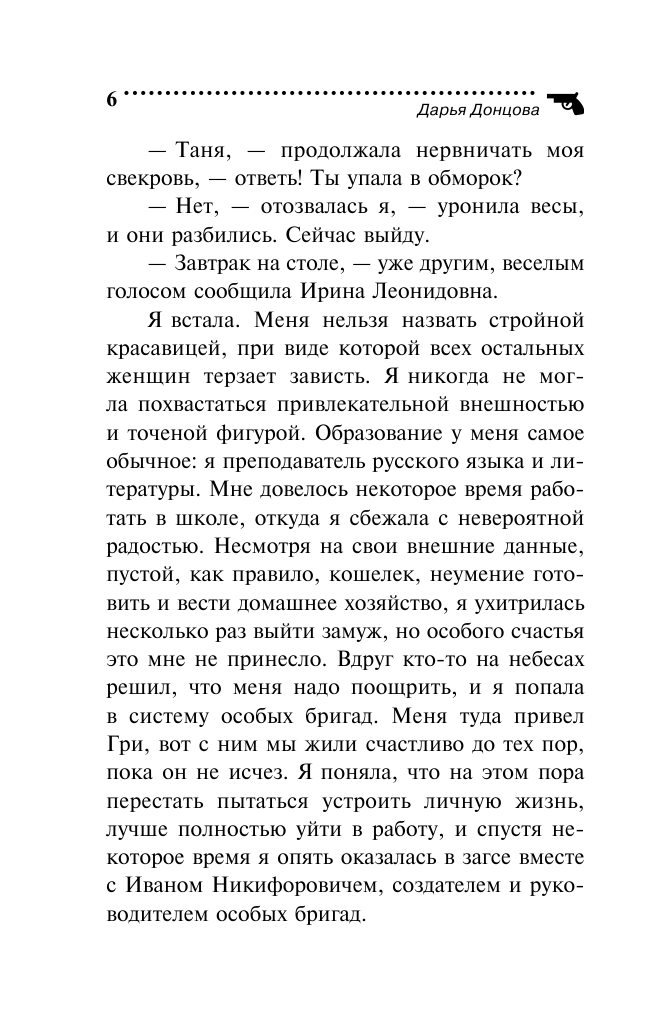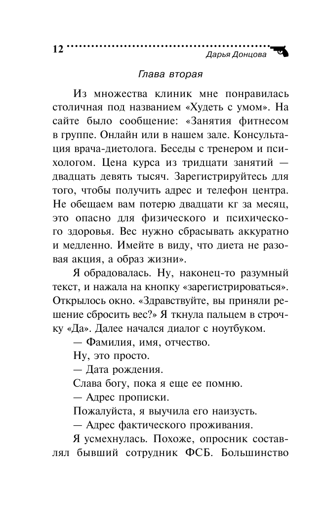 Очень многие люди, даже среди моих знакомых, осуждают тех, кто читает книги Дарьи Донцовой. «Как это можно читать? Это не литература! Нужно читать серьёзную литературу! Необходимо думать и размышлять!» - возмущаются они. Напрашивается вопрос: «Серьёзная литература – это Пруст, Кьеркегор, Шрёдингер?» Да, я согласна, книги Дарьи Аркадьевны не располагают к философским размышлениям «что делать?» и «кто виноват?» А что делать тем, у кого сейчас тяжёлый период в жизни? Например, неизлечимая болезнь? Или невыносимые семейные обстоятельства? Им тоже нужно читать серьёзную литературу и рассуждать о бренности бытия? Нет, им нужно переключить своё внимание, отойти от всех глобальных изысканий смыслов жизни и просто посмеяться над абсурдностью житейских коллизий. Очень давно, много лет назад, выпускали журнал «Крокодил» и в нём была рубрика «Ба! Знакомые всё лица!» Это такая история в карикатурах. Так и у Дарьи Донцовой – карикатура на нашу современную действительность: абсурдные бытовые ситуации, невообразимые, немыслимые приключения и встречи. Но все герои напоминают ныне живущих людей: соседей, родственников, знакомых. Её истории помогают перенестись в какую-то юмористическую, зеркальную реальность, в которой нет тяжёлых, изнуряющих тело болей, туда, где нет неразрешимых, безвыходных бытовых ситуаций. Мне знакомы люди, которые вытащили себя из тяжелейших депрессий с помощью книг Дарьи Аркадьевны. У этих людей впервые за долгое время появился в глазах свет надежды, свет, который не позволит им совершить страшный поступок против самого себя. Тот свет, который поможет отыскать потерянную ниточку жизни. И у этих людей непременно всё будет хорошо!