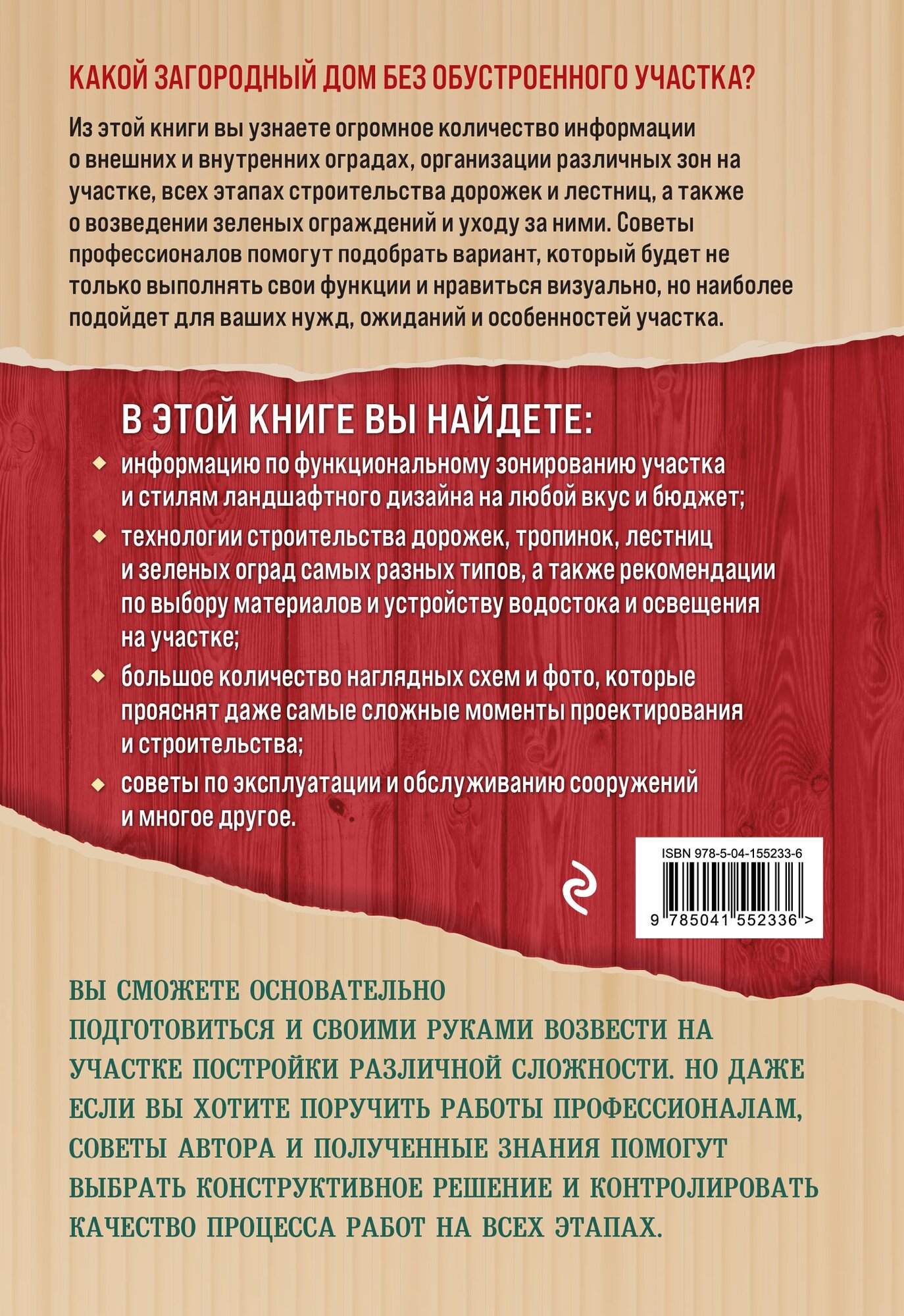 В полном восторге от этой книги! Внутри ожидала увидеть про материалы и постройку, но оказалось настолько обширное поле, что впору становится ландшафтным дизайнером. Много рассказано про стили, какие материалы с чем лучше выглядят, разнообразие просто поражает и при этом никакой лишней воды. Построить дорожку на своем участке или навести красоту это можно объеденить в одно.