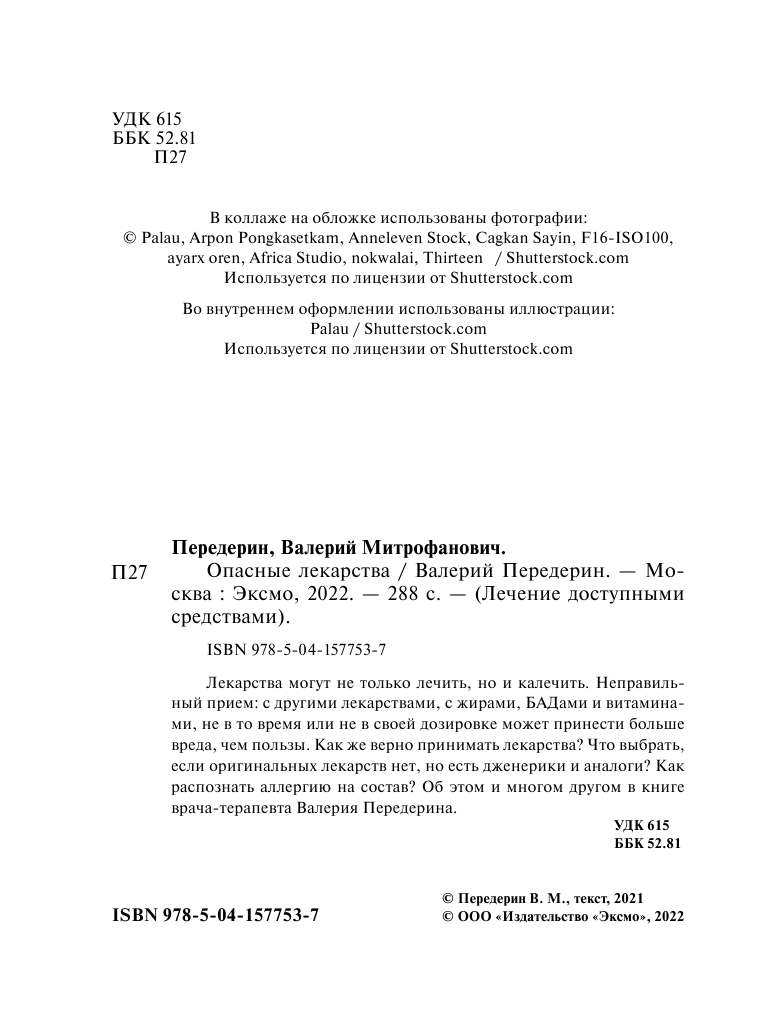 Книга: Опасные лекарства (Передерин Валерий Митрофанович); ООО "Издательство "Эксмо", 2022
