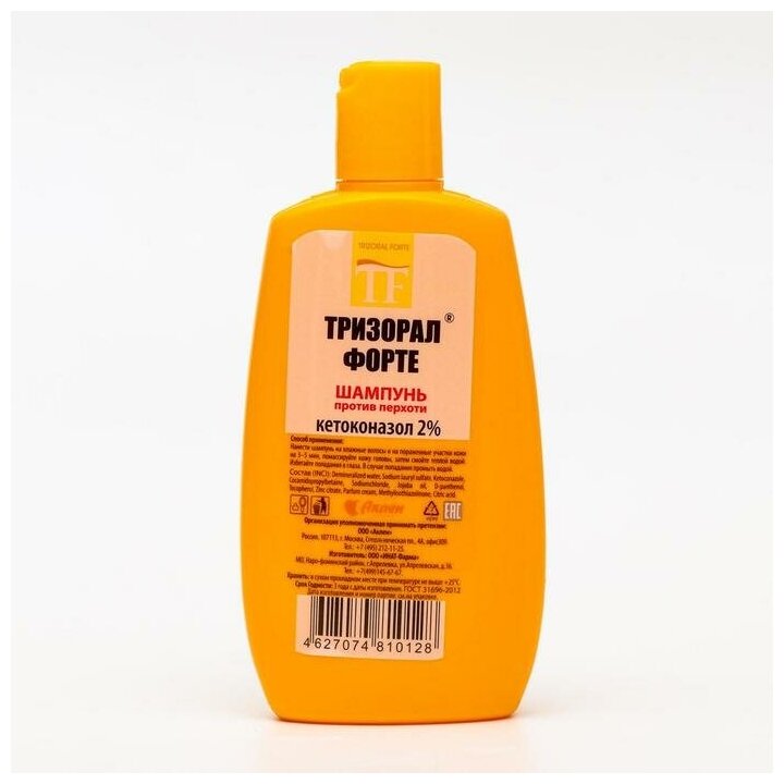 Тризорал Форте — шампунь, который создан специально для того чтобы бороться с перхотью. Для этого тщательно подобран каждый компонент, входящий в его состав: Мощное противогрибковое средство Кетоконазол содержится в Тризорал Форте в концентрации 2%. Он мощнее, чем обычное средство. Избавляет от перхоти после первого использования, мягко очищает волосы и придает им здоровый внешний вид, регулирует работу сальных желез, способствует отшелушиванию , снимает воспаление.