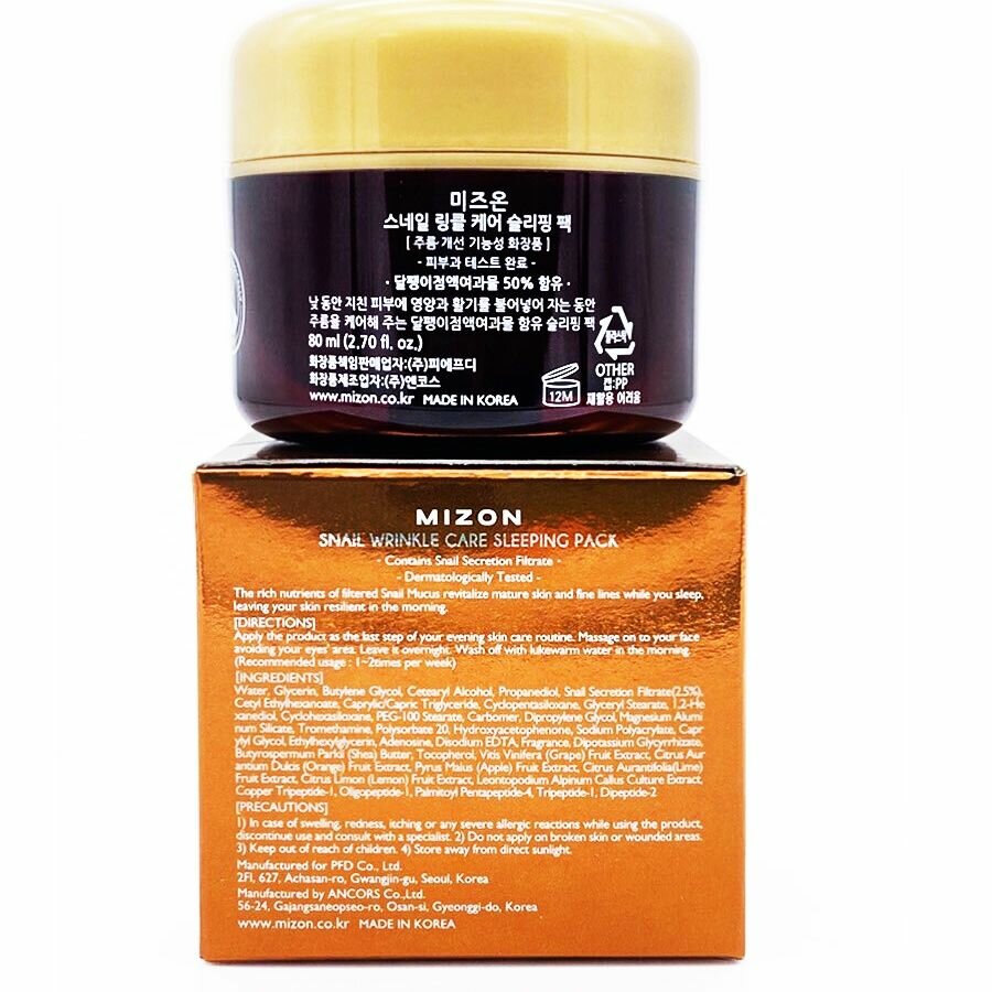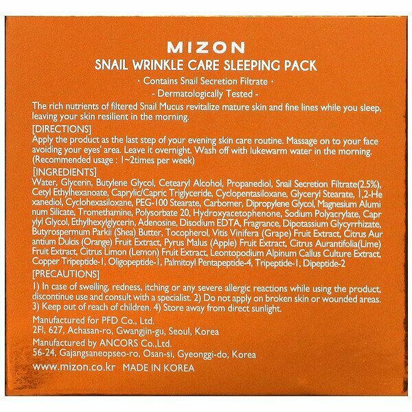 Маска ночная с экстрактом улитки Snail wrinkle care sleeping pack MIZON 80мл COSON Co., Ltd (1526866)