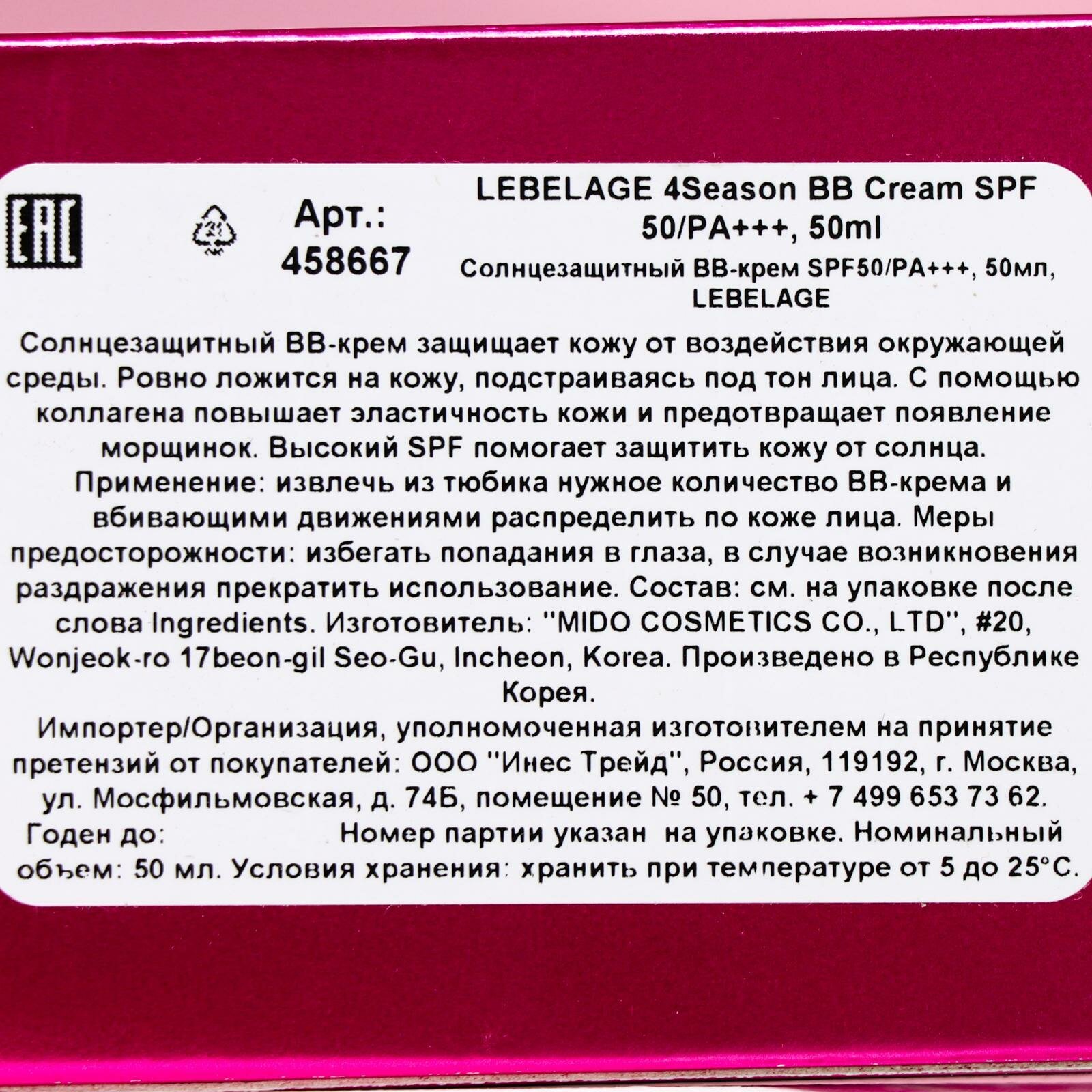 | Коллекция | Lebelage 4Season BB Cream |