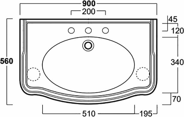 Раковина 90*56, с 3 отв. (2отв. выбитых вручную), цвет: белый