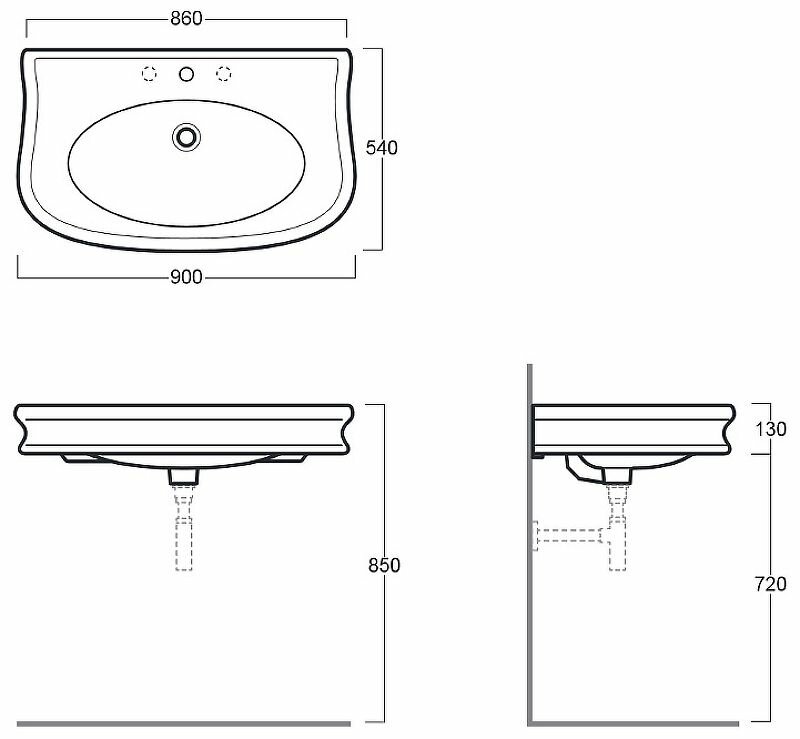 Раковина 90*54*h13, с 1 отв. под смеситель, цвет: белый