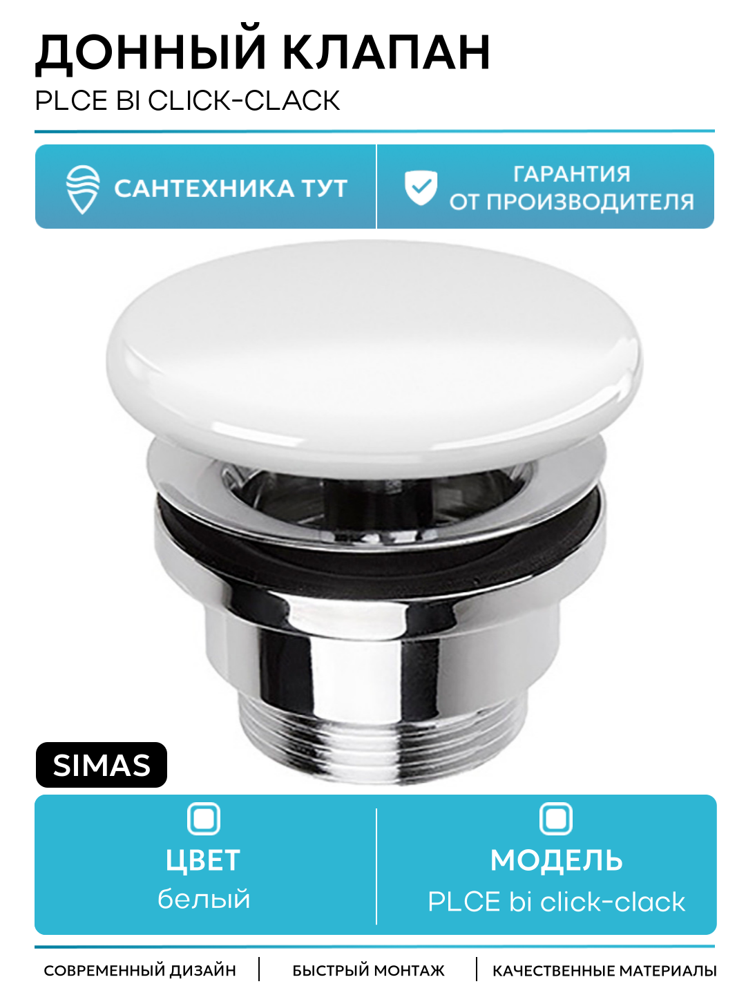 Донный клапан Simas PLCE bi click-clack Белый глянцевый