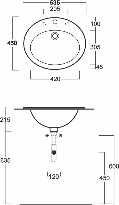 | Особенности раковины | подходит для смесителя на 3 отверстия |