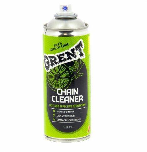 GRENT Очиститель цепи 520 мл Специальный очиститель обеспечивающий быструю и эффективную очистку и обезжиривание цепей мотоциклов, картингов, мопедов, велосипедов и т.п. Удаляет все въевшиеся загрязнения: пыль, песок,gязь, масло и старую смазку. Подходит для очистки цепей с кольцеобразными втулками O-ring, X-ring, Z-ring.