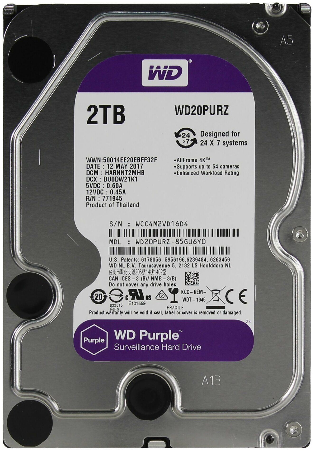 Жесткий диск WD Purple 2ТБ HDD SATA III 3.5" WD22PURZ