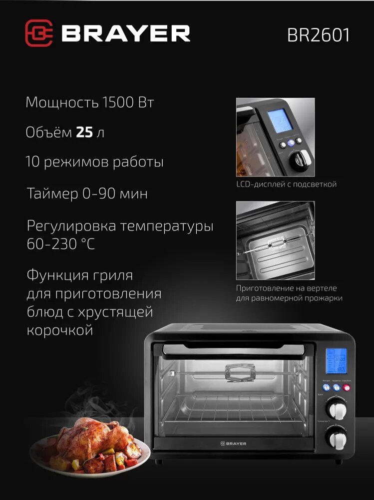 Мини-печь Brayer черная Мини-печь 25 л BR2601