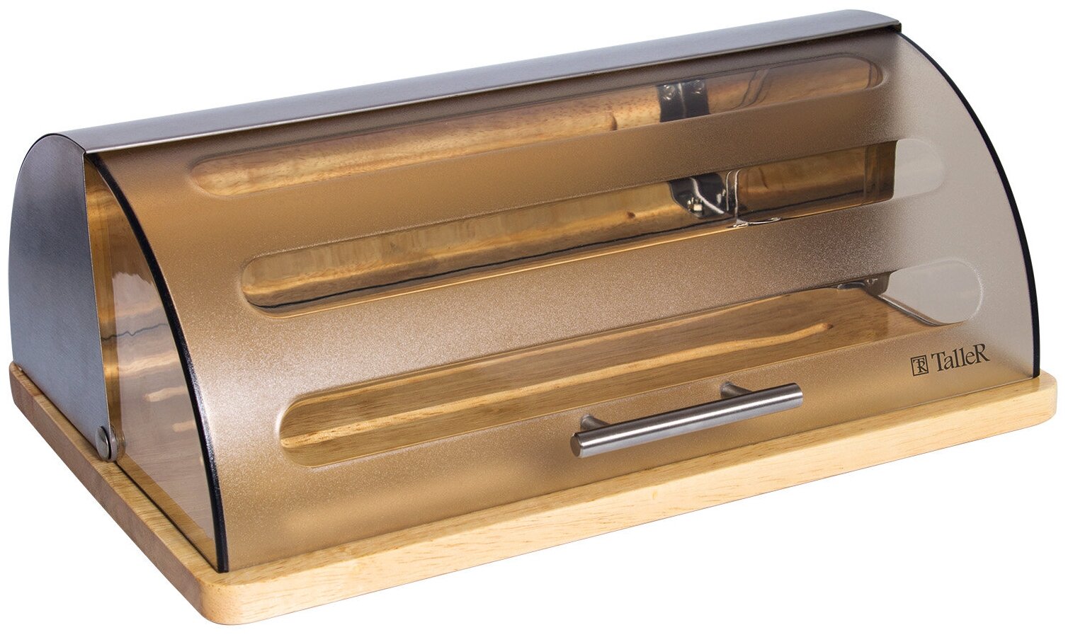 Хлебница нержавеющая сталь дерево 39х26.5х15 см с разделочной доской Taller 51978 Хлебница Эйлин TR-51978