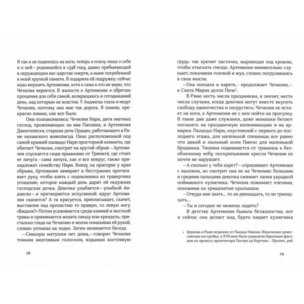 Роман Анны Банти об Артемизии Джентилески, изданный в 1947 году, вернул общественный интерес к выдающейся итальянской художнице, последовательнице Караваджо. В книге мы не найдем документальной точности и достоверности в изложении событий жизни героини, сумевшей драматические эпизоды собственной биографии переплавить в образы искусства. Это, скорее, попытка воссоздать внутренний мир столь яркой личности и исторический контекст, в котором она могла появиться. Заказчиками и покровителями Артемизии были европейские монахи, учениками - художники-мужчины, признавшие ее безусловный приоритет в живописи. Талант и сила духа художницы XVII века, во многом опередившей свое время, производят впечатление и в наши дни.