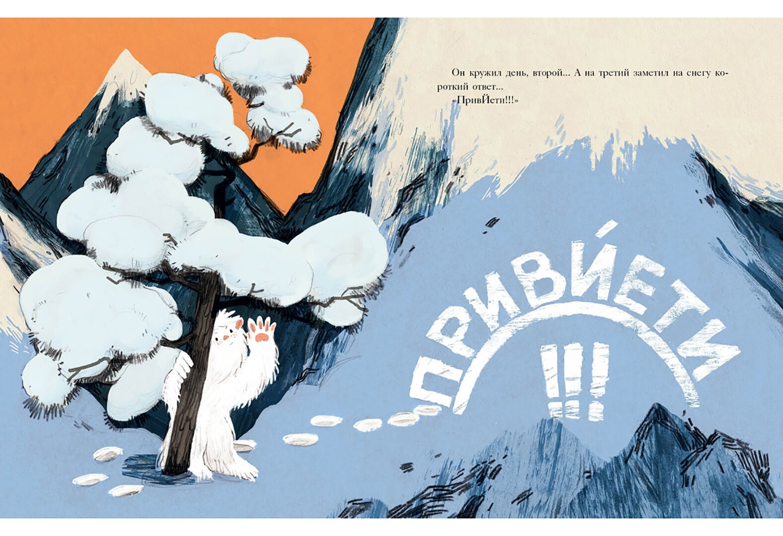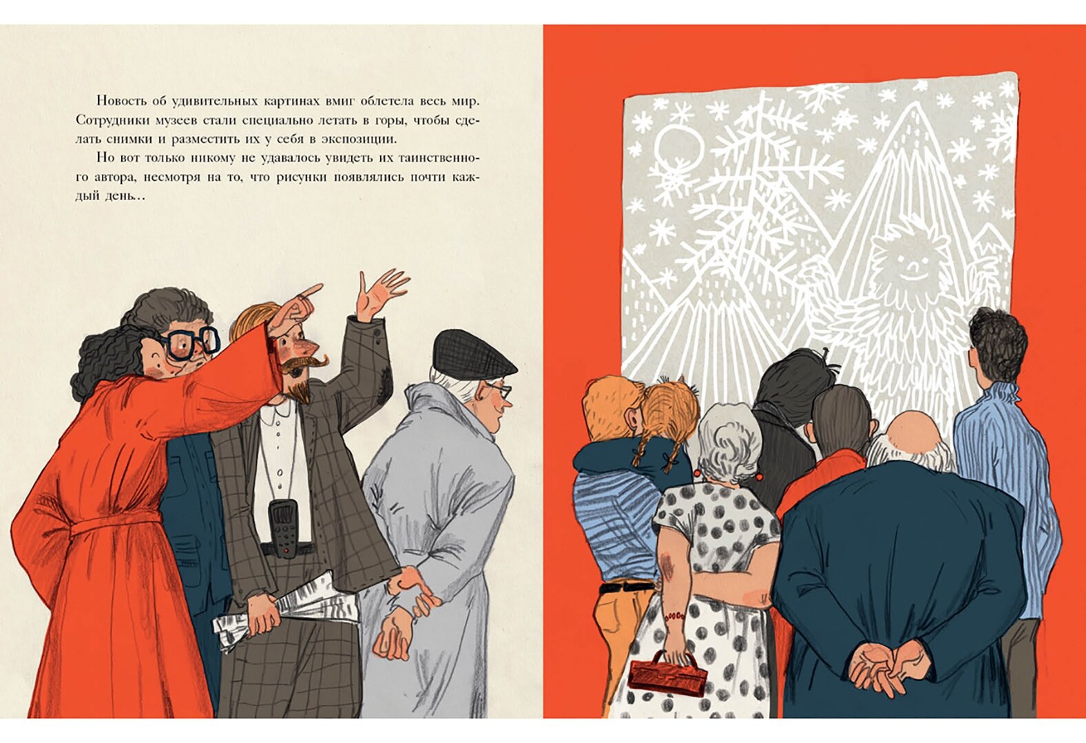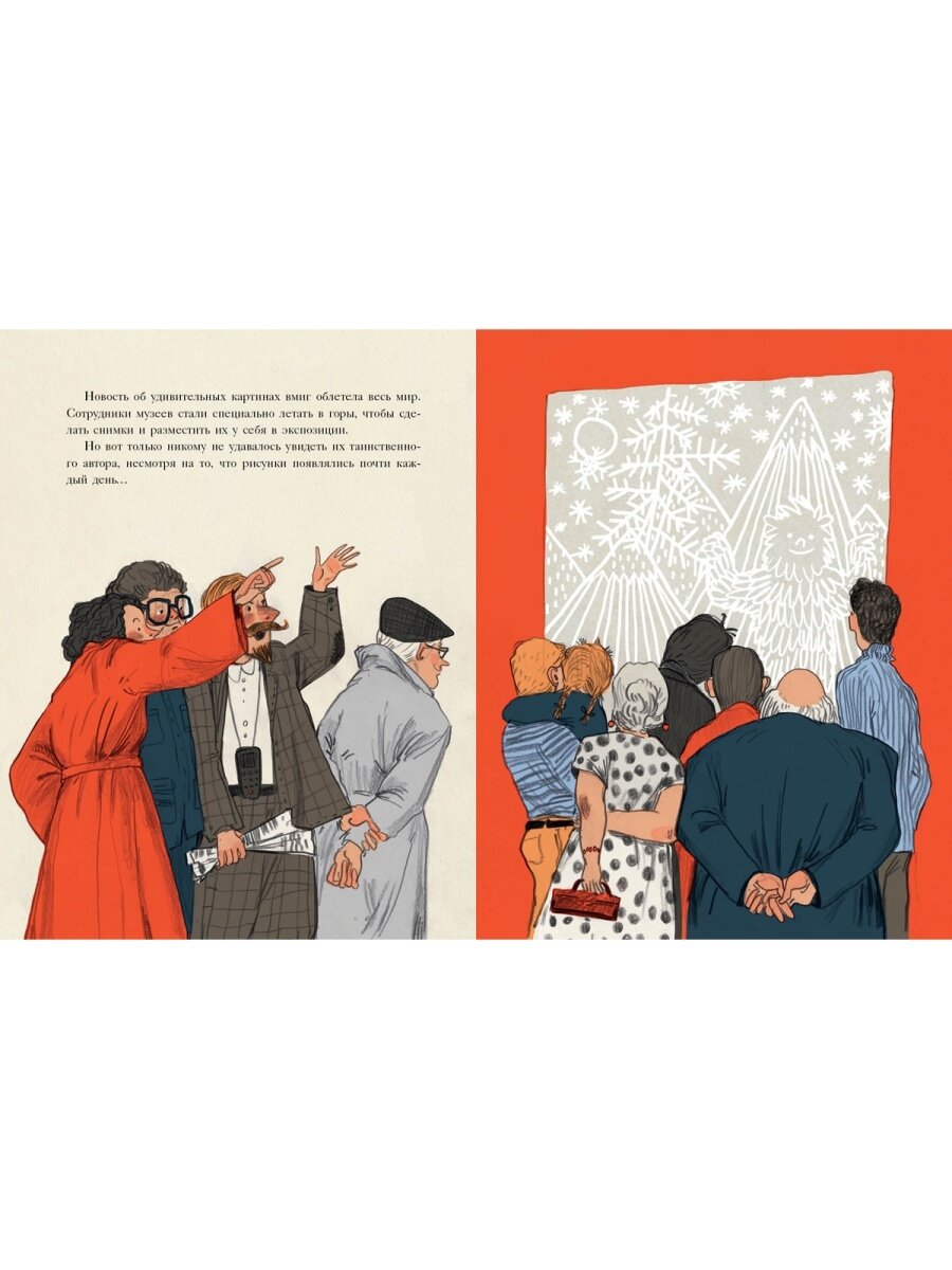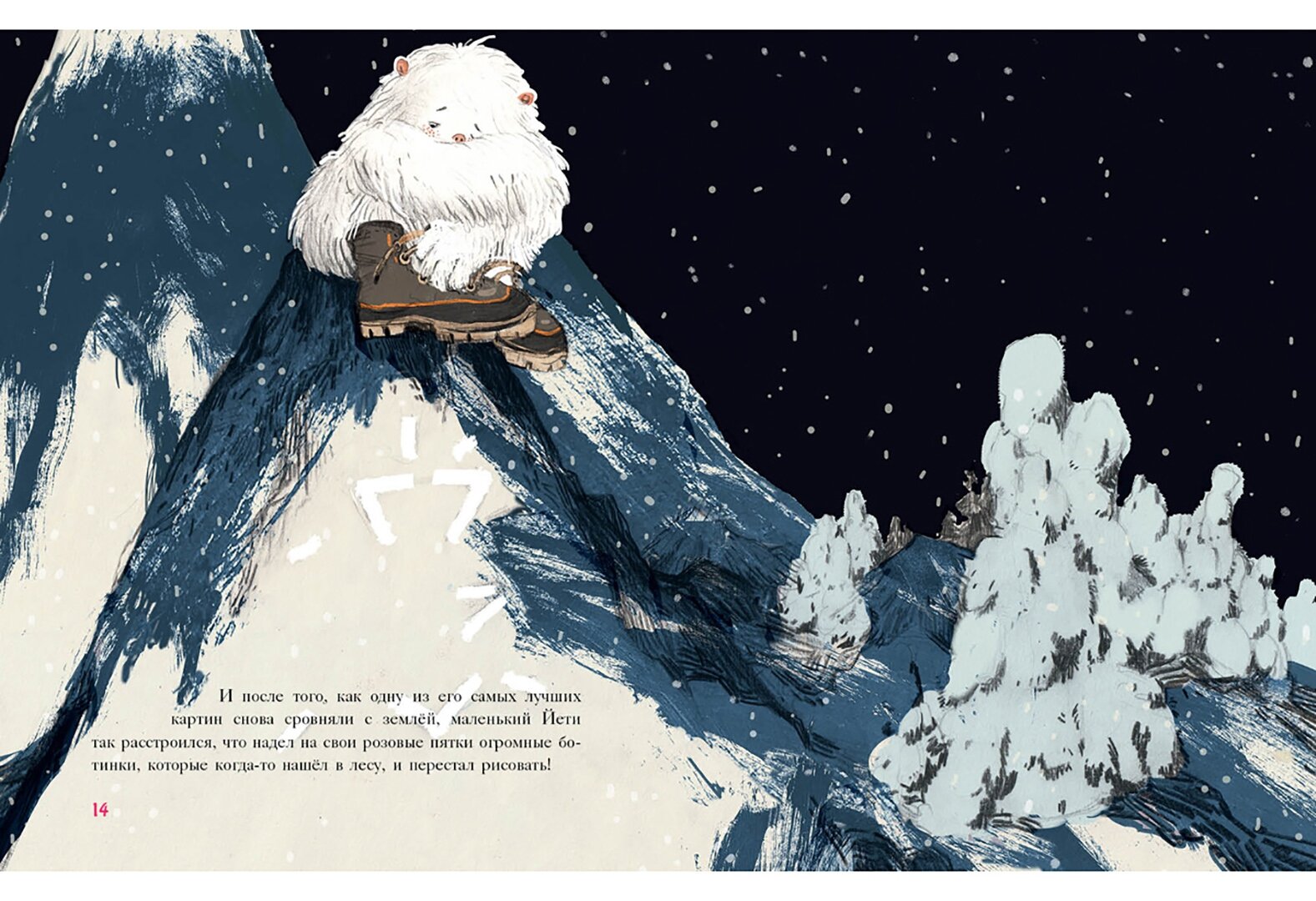 Этими пятками малыш рисовал на снегу огромные картины. Другие йети не понимали рисунков малыша и часто смеялись над ним. Но однажды его творения заметил, пролетавший на самолёте известный художник.