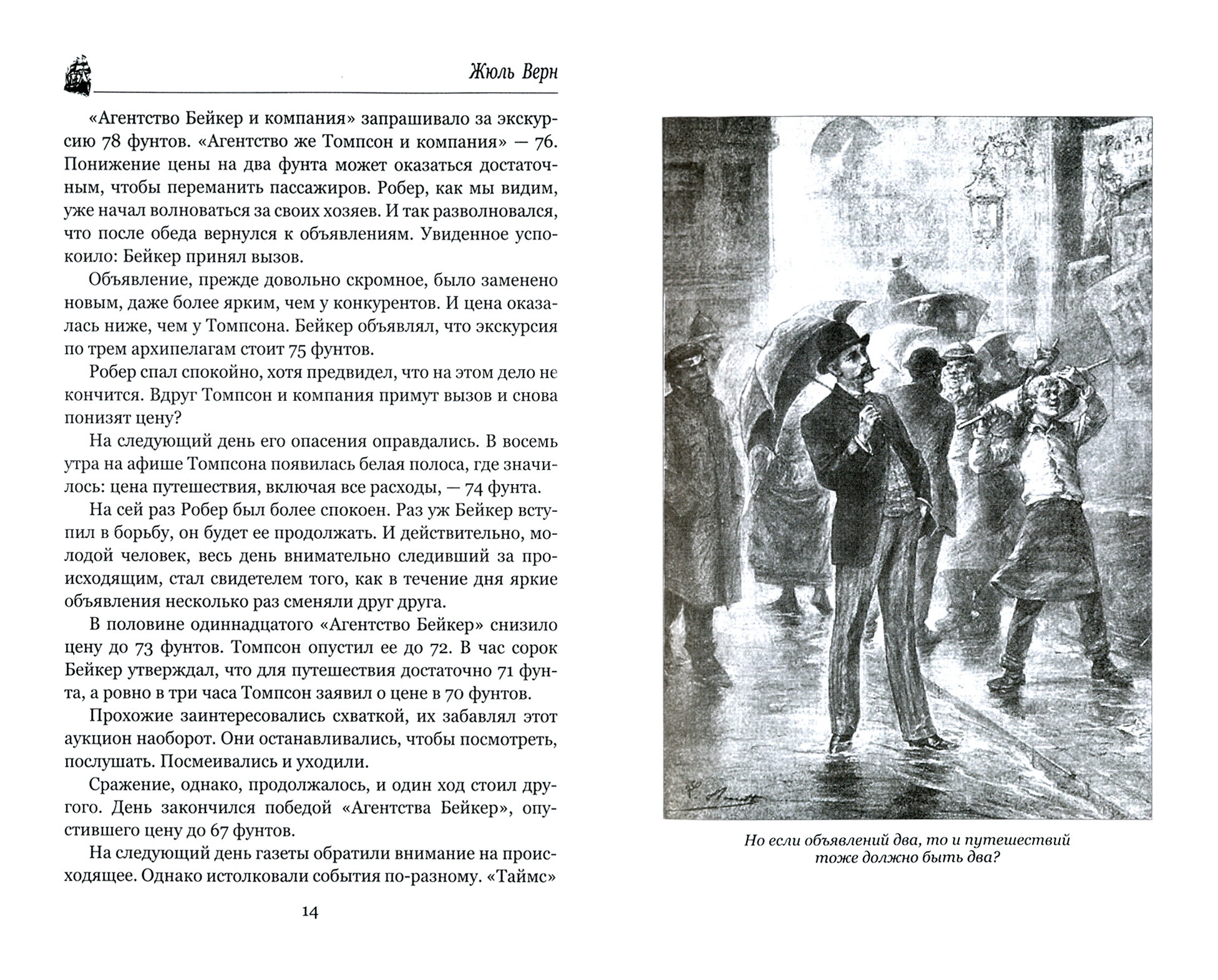 Сотрудника агентства господина Бейкера молодой человек полностью устроил, работа была у него в кармане, если бы не одно «но» — в лице другой туристической фирмы — «Агентство Томпсон и Ко», которая вступила в открытое противостояние с агентством Бейкера в борьбе за клиентов, на следующий день вывешившей свою афишу, гласившую, что то же самое путешествие можно совершить, уплатив на два франка меньше…
