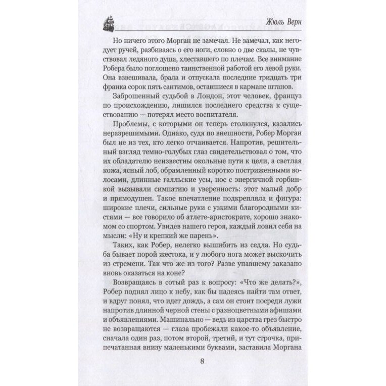 Для молодого человека Робера Моргана, у которого в кошельке осталось всего 33 франка и 45 сантимов, эта афиша, перечитанная им в четвертый раз, давала надежду. Одинокому в этом большом городе под названием «Лондон», без друзей и работы, должность гида-переводчика, для предстоящего путешествия стоимостью в 78 франков, была настоящей манной небесной.